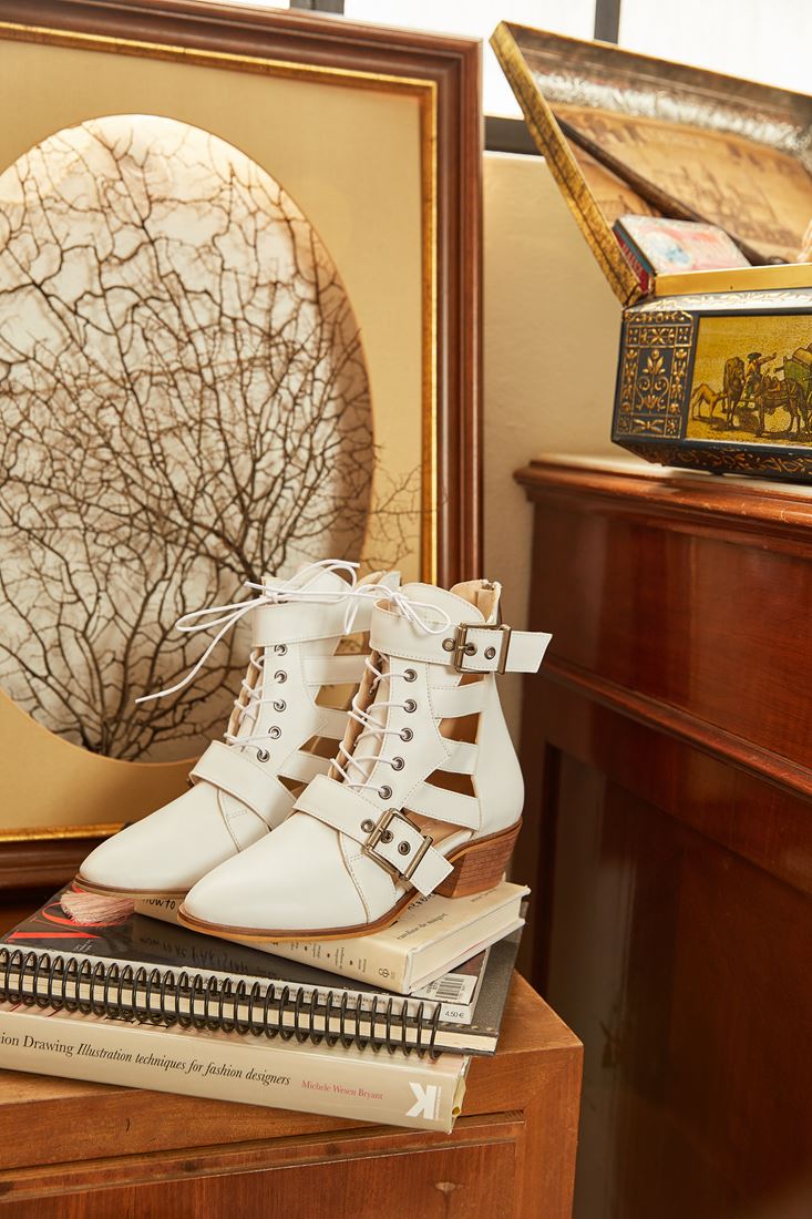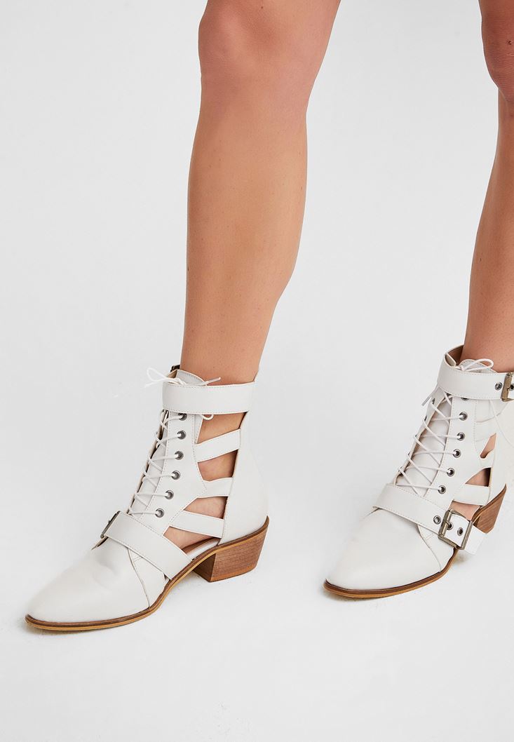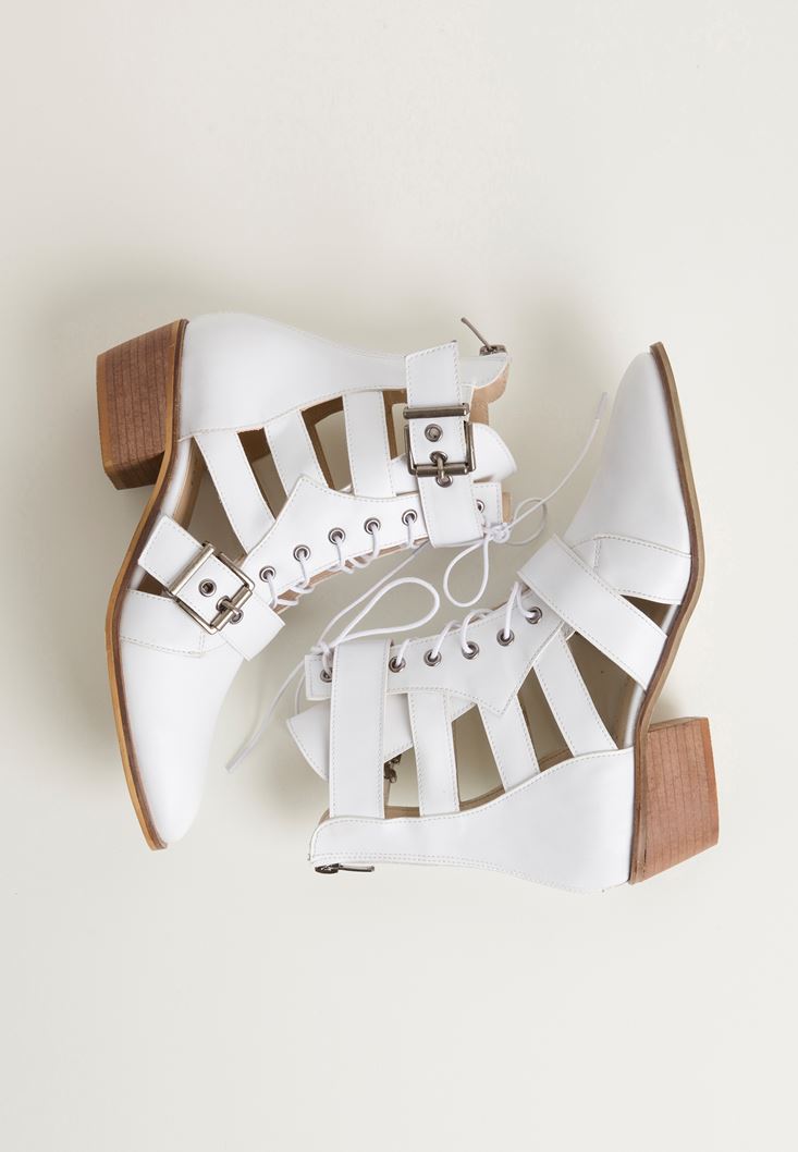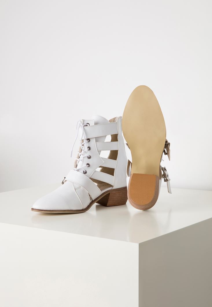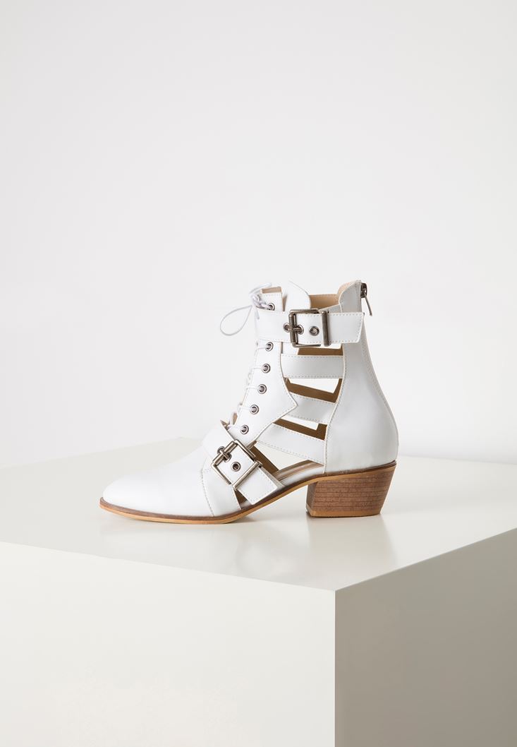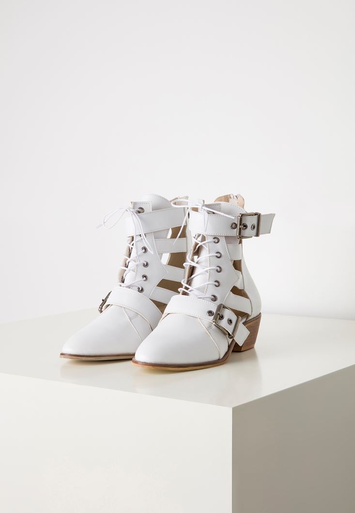 • Bayan Beyaz Cut Out Bilek Bot