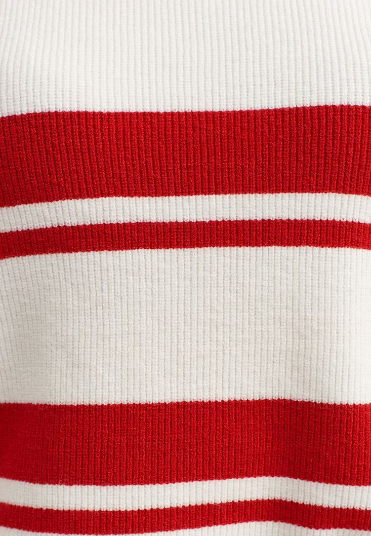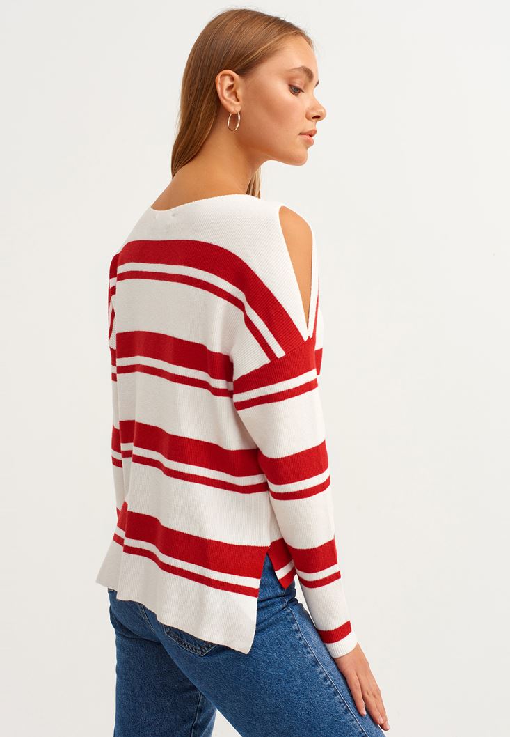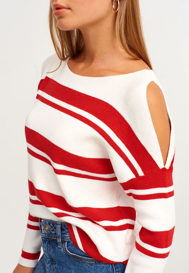 • Bayan Kırmızı Cut-Out Çizgili Triko