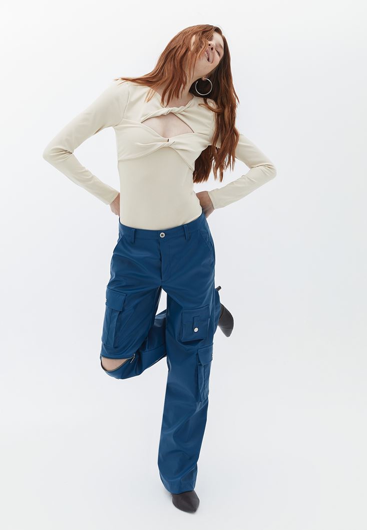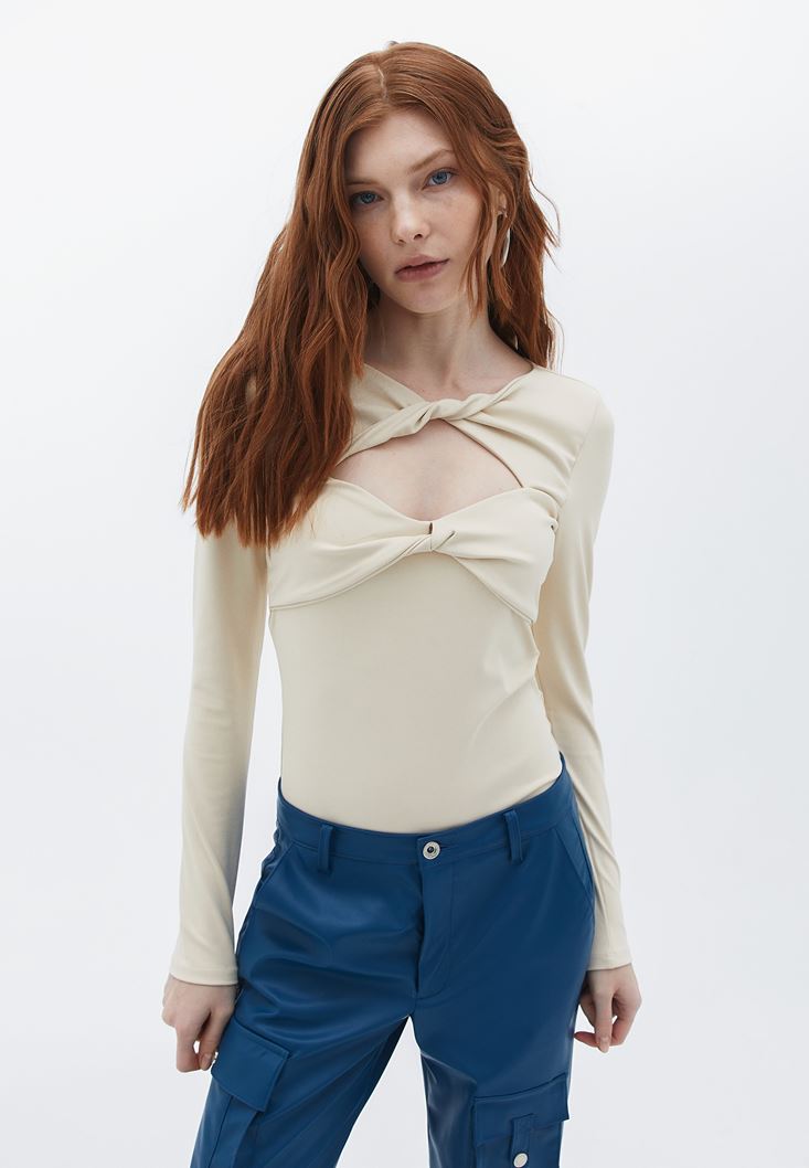 Bej Cut-Out Detaylı Bodysuit