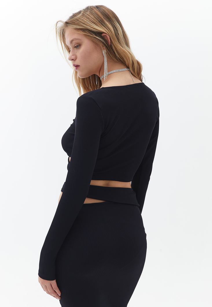 • Bayan Siyah Cut-Out Detaylı Crop Bluz