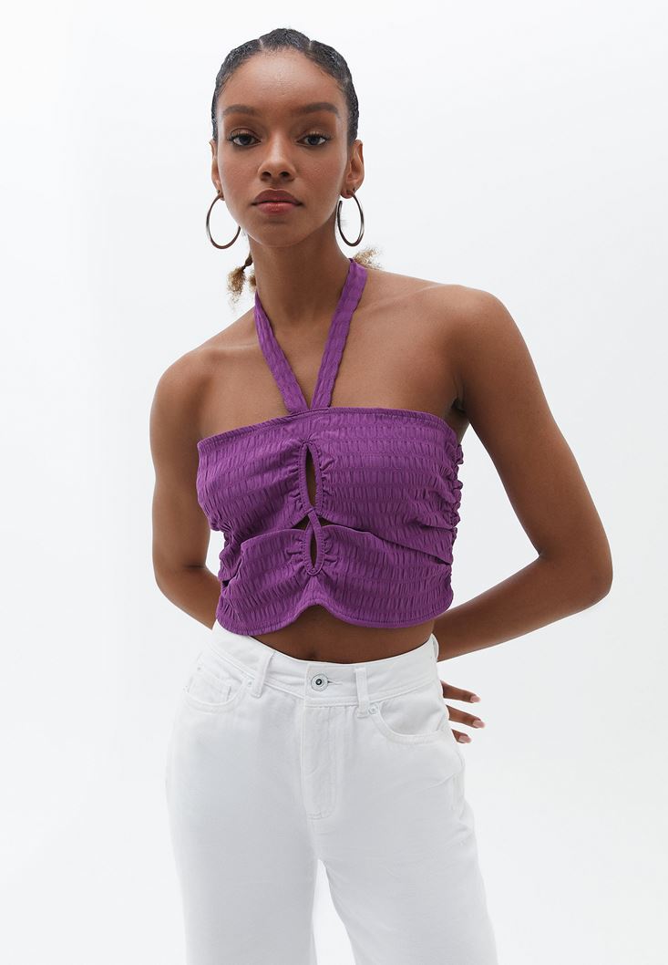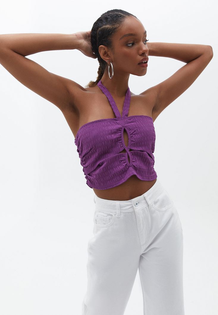 Cut-Out Detaylı Crop Top ve Pantolon Kombini