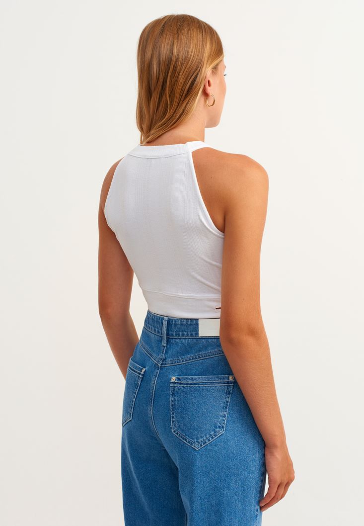 Beyaz Cut-Out Detaylı Halter Yaka Atlet