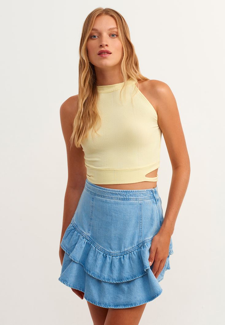 Sarı Cut-Out Detaylı Halter Yaka Atlet