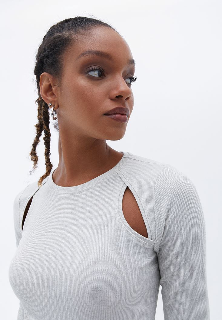 Viskon karışımlı içerik, sıfır yaka, omuz kısımları cut out detaylı, uzun kollu, bedeni saran fit.
