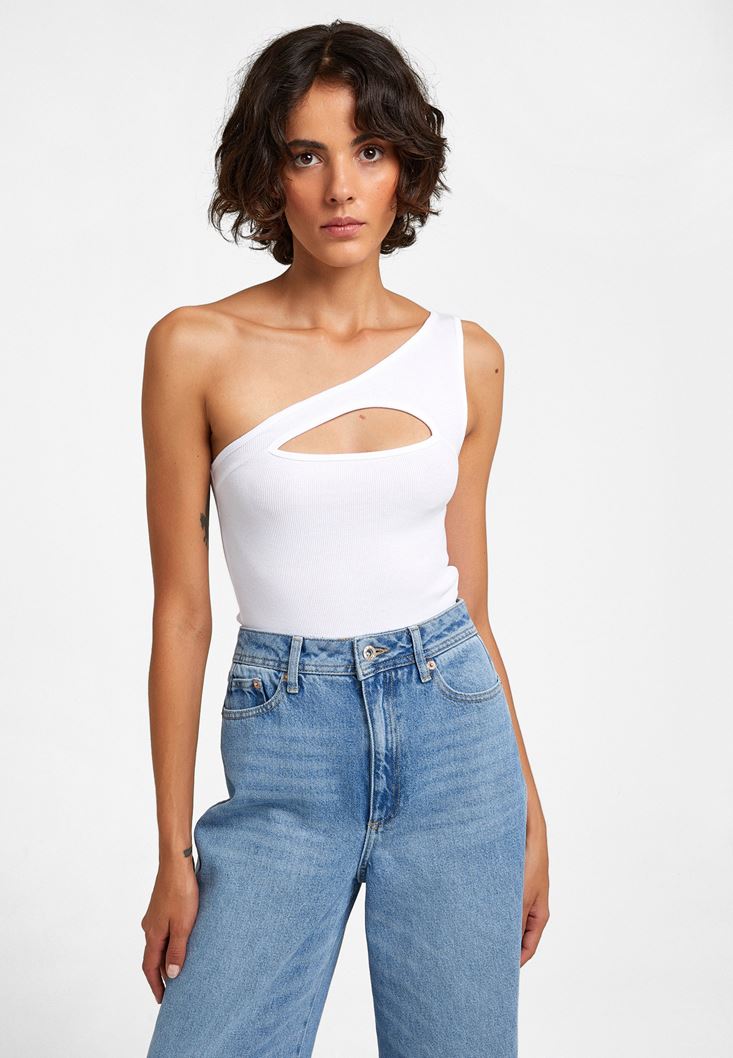 Beyaz Cut-Out Detaylı Kısa Atlet