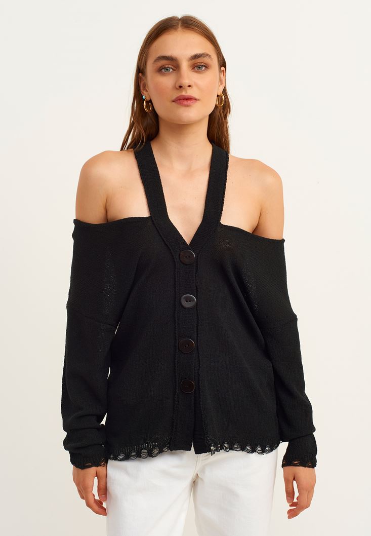 • Bayan Siyah Cut-Out Detaylı Midi Hırka