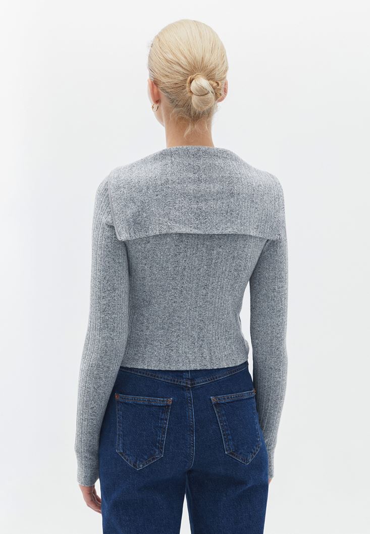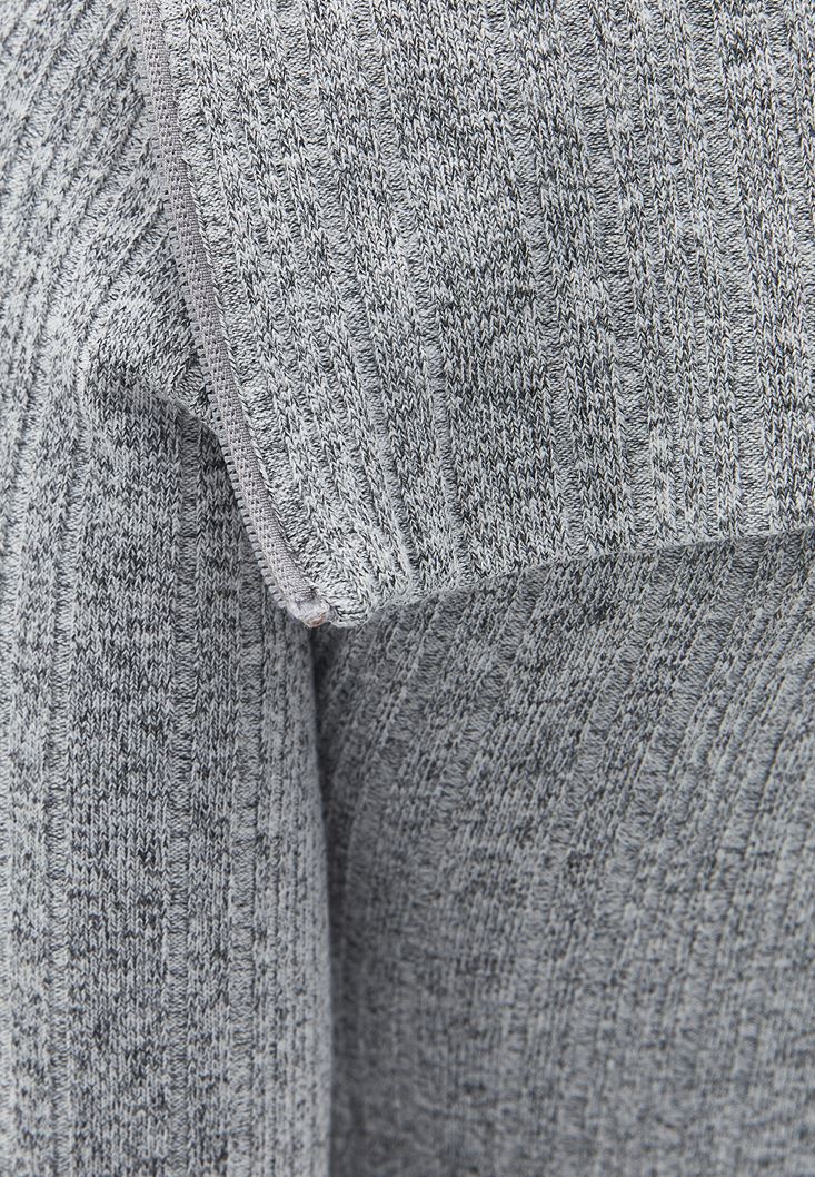 Pamuk ve viskon karışımlı, fermuarlı yüksek yaka, fermuar açıldığında geniş yaka olarak kullanılabilir, uzun kollu, kol ucu parmaklık detaylı, bedeni saran esnek fit.