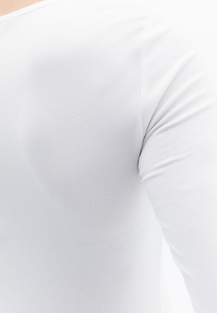Krem Cut-Out Detaylı Tişört