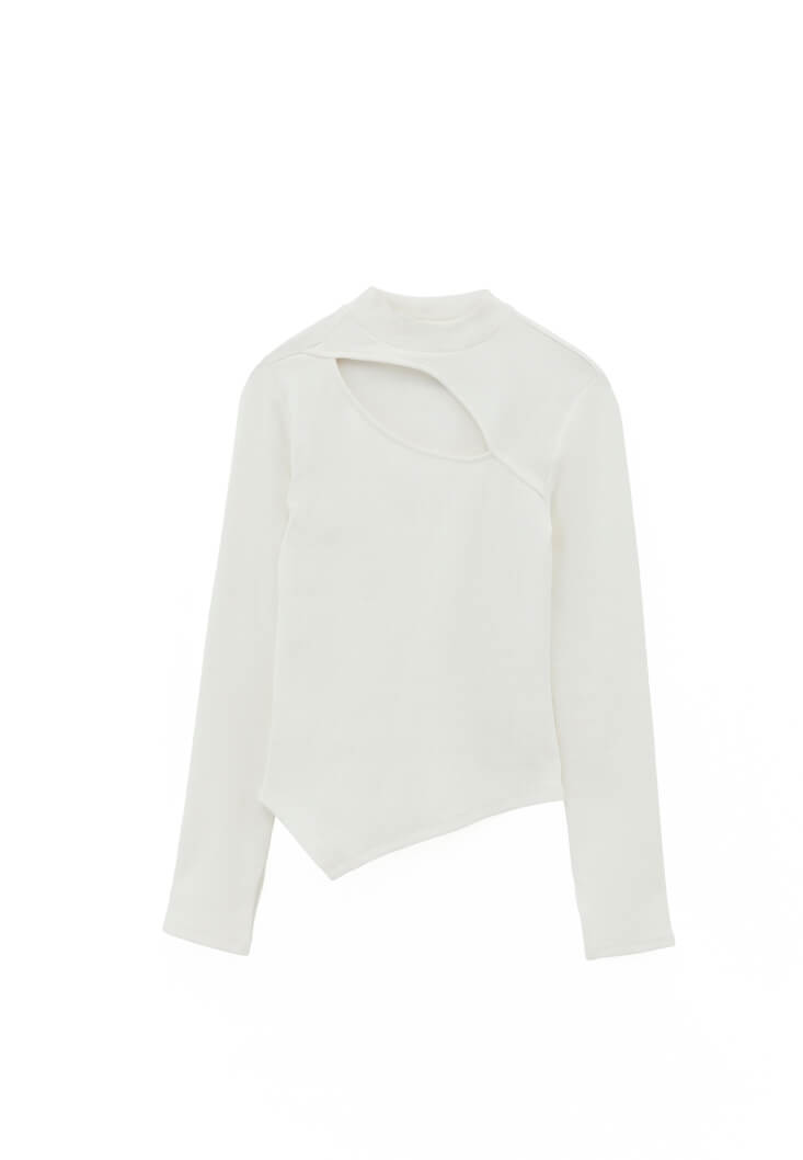 Krem Cut-Out Detaylı Tişört