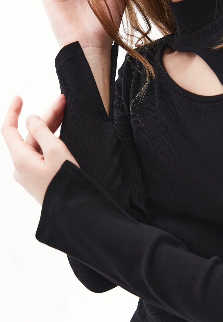 • Bayan Siyah Cut-Out Detaylı Tişört