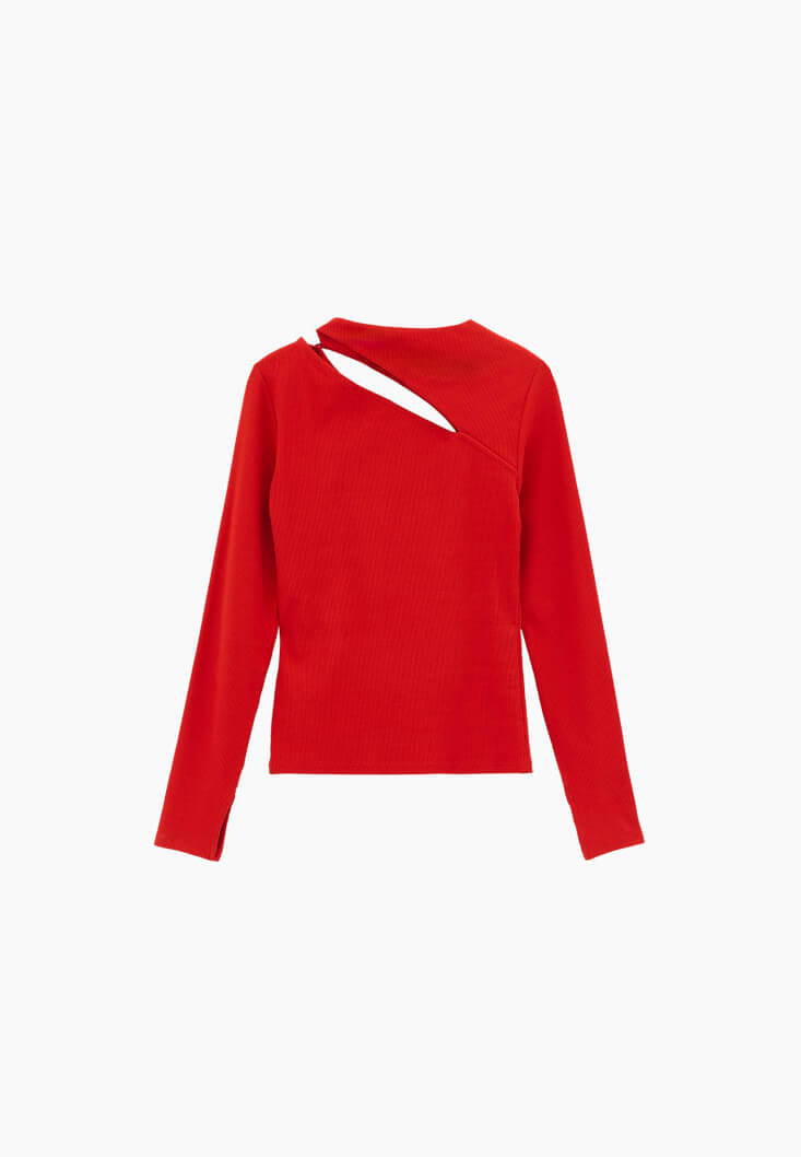 • Bayan Kırmızı Cut-Out Detaylı Tişört