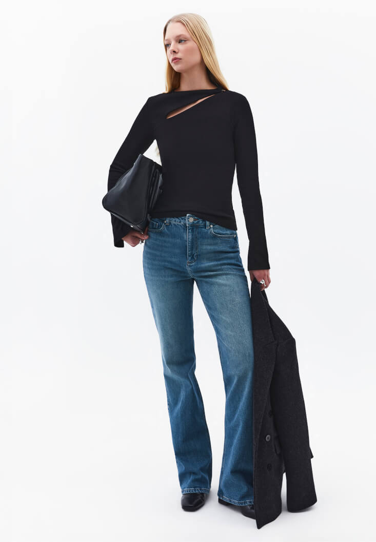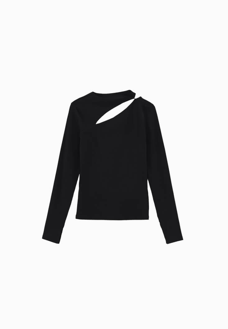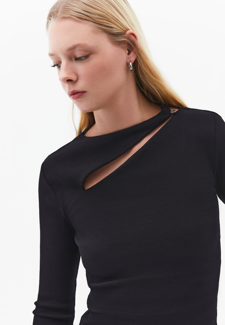 • Bayan Siyah Cut-Out Detaylı Tişört