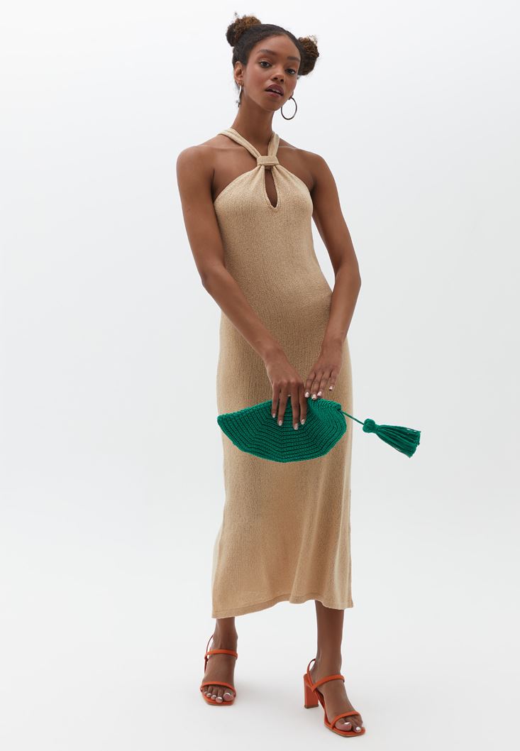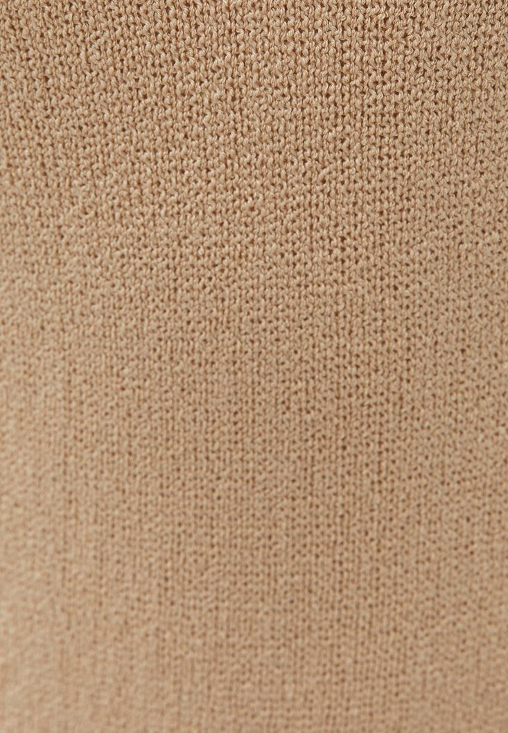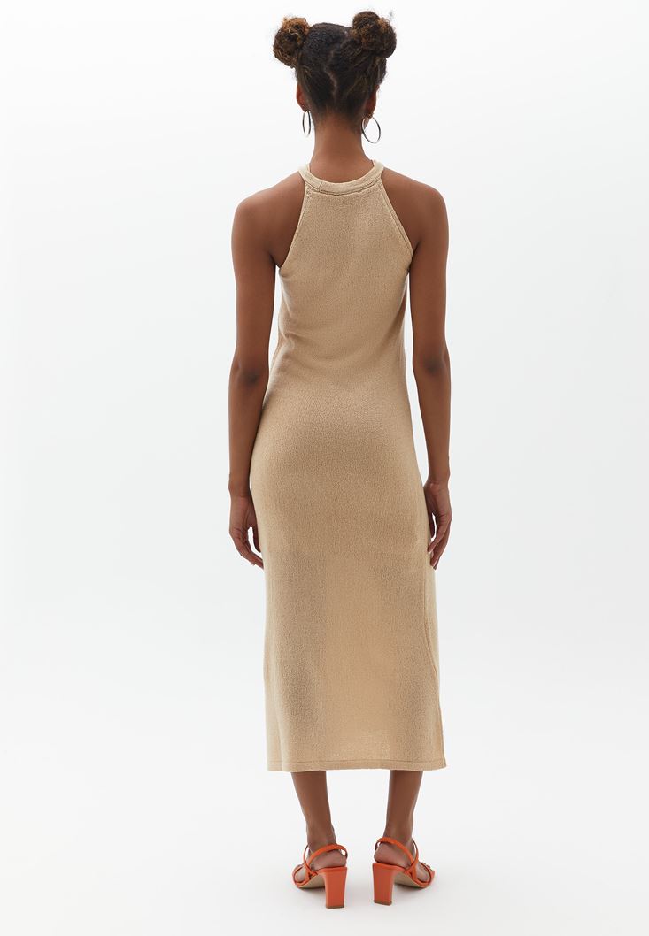 Bej Cut-Out Detaylı Triko Elbise