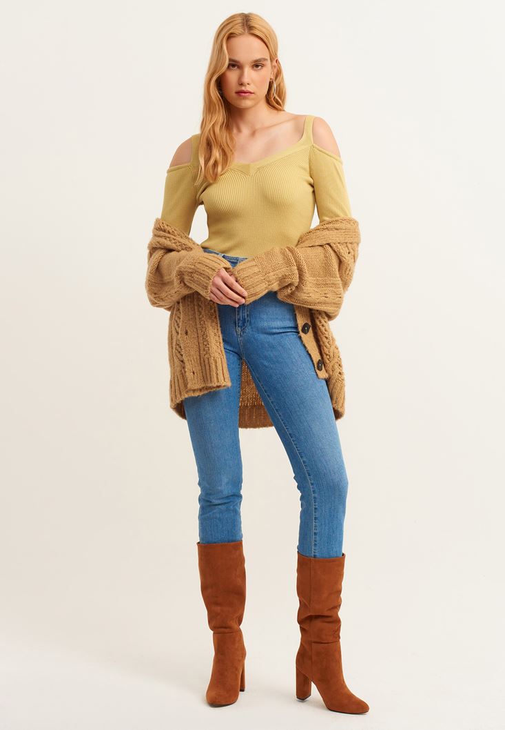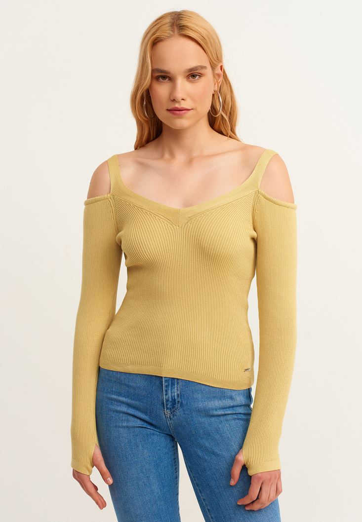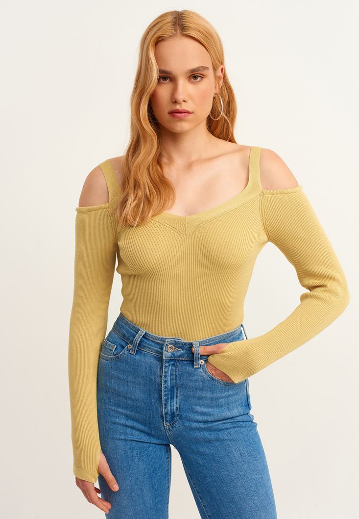 • Bayan Sarı Cut-Out Detaylı Triko ( MODAL )