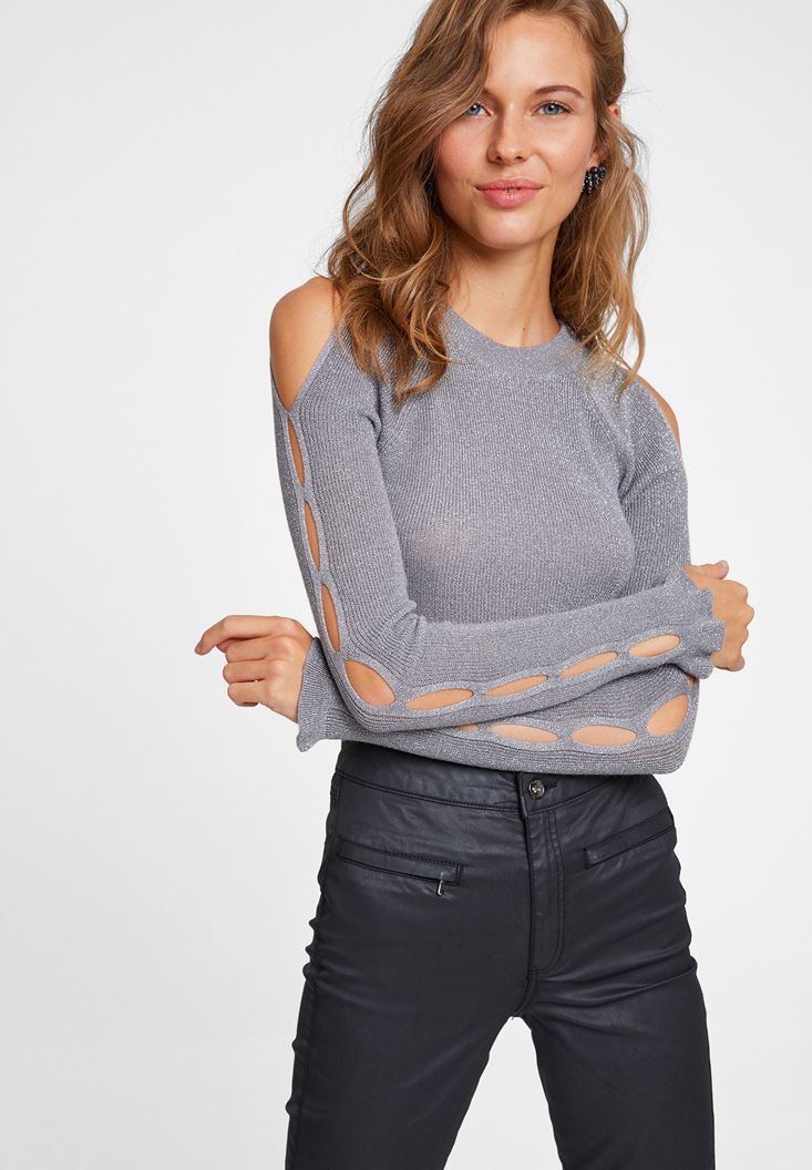 Cut Out Detaylı Triko bluz kombinlerinde iddialı ama zarif parçalara yer vermek isteyenlerin kısa sürede vazgeçilmez parçaları arasına katılacak bluz modelleri arasında yer alıyor. Bisiklet yaka kesime sahip olan triko modeli yakadan kısa bir mesafe sonrasında başlayan omuz dekoltesi ve kol boyunca uzanan pencere formundaki dekolte detayları ile dikkat çekiyor. Kol kesiminde kullanılan pencere dekoltelerin biyelerindeki ışıltılar ise tasarıma zarif bir hava kazandırıyor. Triko modelinin dokusunda kullanılan viskon lifi tasarımın yumuşak ve nefes alan bir kullanım deneyimi sunmasına yardımcı olurken dokuda kullanılan metal iplikler zarif bir ışıltıyı ön plana çıkarıyor. OXXO’nun enerjisini zarafet ile bir araya getiren triko modelleri arasında dikkat çeken tasarımı klasik, günlük, gece ve sokak modası kombinlerinizde kullanabilirsiniz.