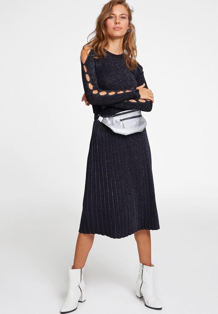 Cut Out Detaylı Triko bluz kombinlerinde iddialı ama zarif parçalara yer vermek isteyenlerin kısa sürede vazgeçilmez parçaları arasına katılacak bluz modelleri arasında yer alıyor. Bisiklet yaka kesime sahip olan triko modeli yakadan kısa bir mesafe sonrasında başlayan omuz dekoltesi ve kol boyunca uzanan pencere formundaki dekolte detayları ile dikkat çekiyor. Kol kesiminde kullanılan pencere dekoltelerin biyelerindeki ışıltılar ise tasarıma zarif bir hava kazandırıyor. Triko modelinin dokusunda kullanılan viskon lifi tasarımın yumuşak ve nefes alan bir kullanım deneyimi sunmasına yardımcı olurken dokuda kullanılan metal iplikler zarif bir ışıltıyı ön plana çıkarıyor. OXXO’nun enerjisini zarafet ile bir araya getiren triko modelleri arasında dikkat çeken tasarımı klasik, günlük, gece ve sokak modası kombinlerinizde kullanabilirsiniz.