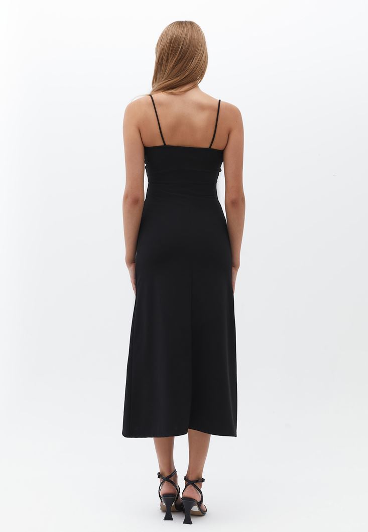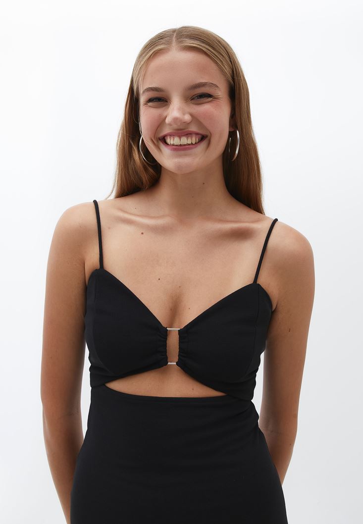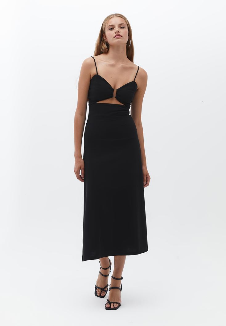 Siyah Cut-Out Detaylı Uzun Elbise