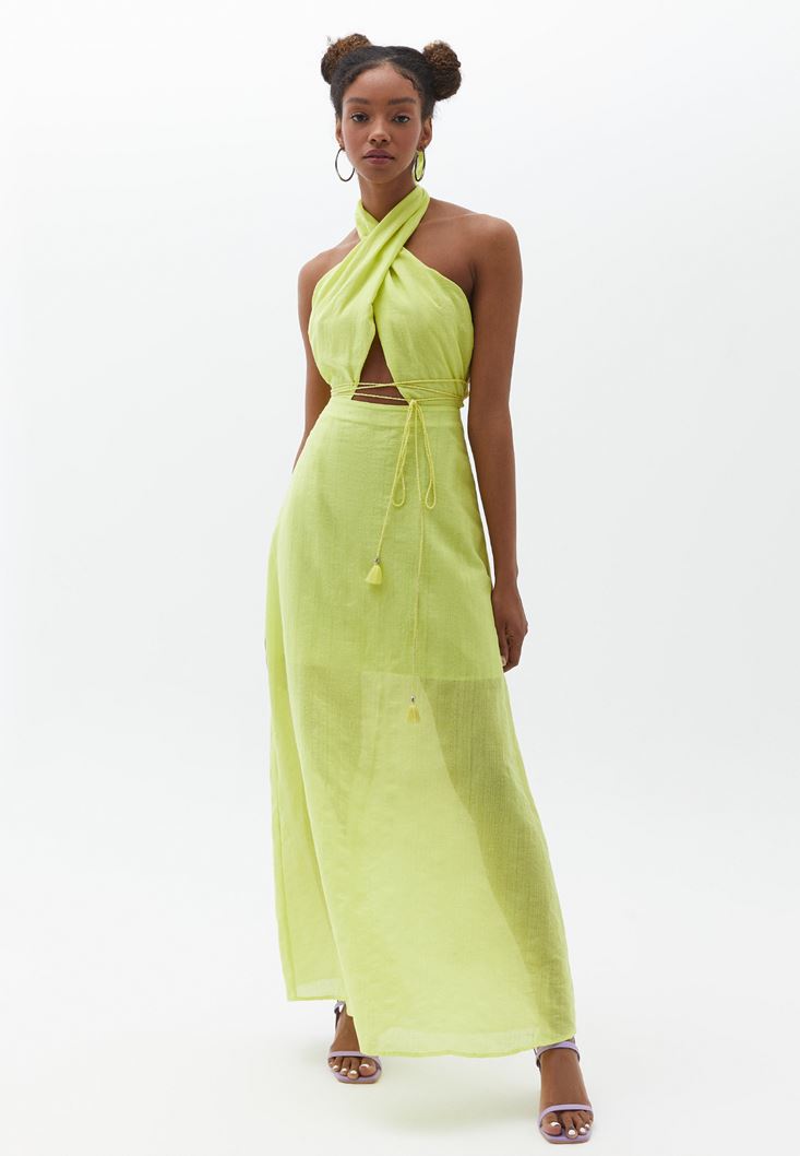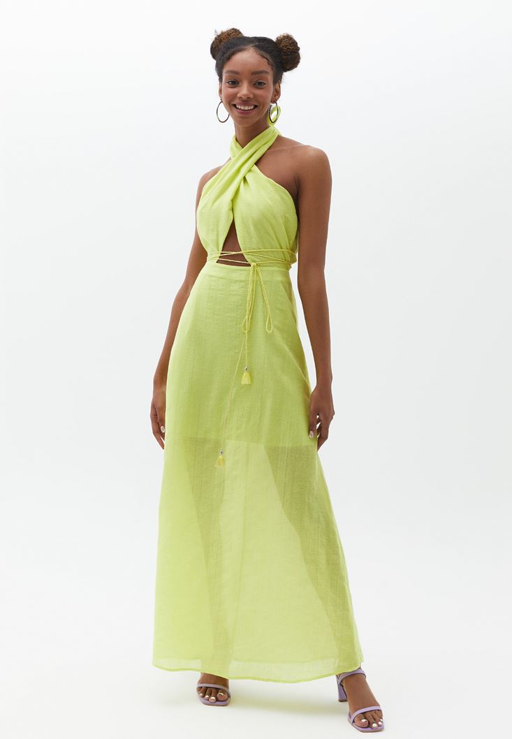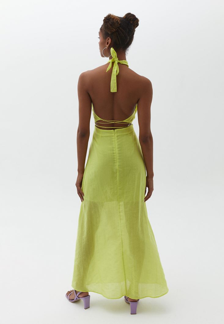 Yeşil Cut-Out Detaylı Uzun Elbise