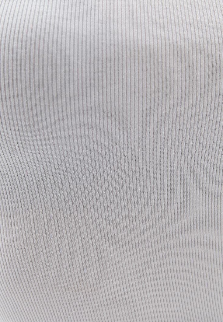 Pamuk içerikli fitilli doku, yüksek yaka, ön kısmı cut-out detaylı, bedeni saran esnek fit, uzun kollu, standart boy.