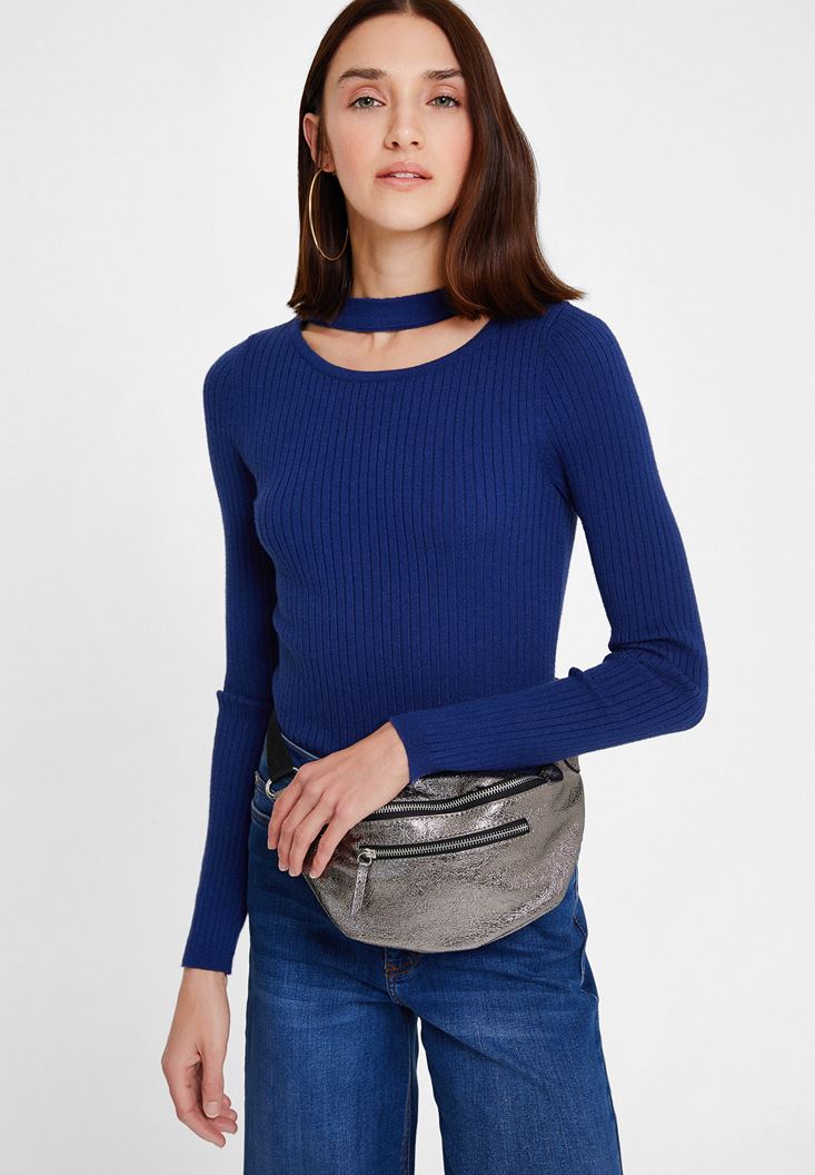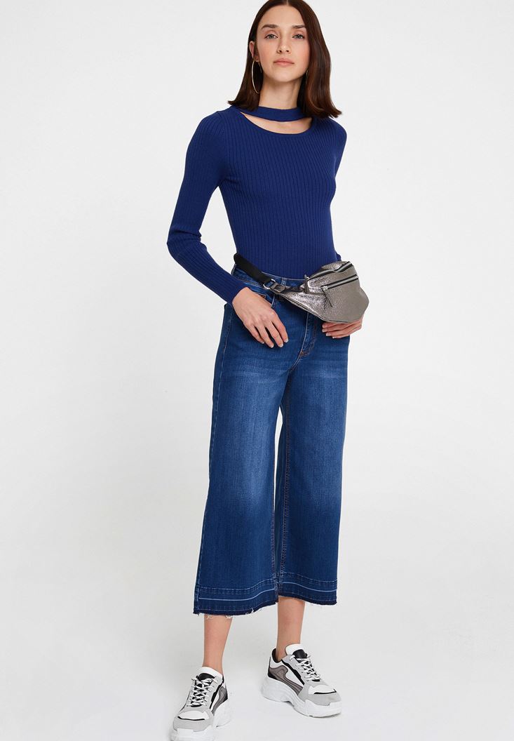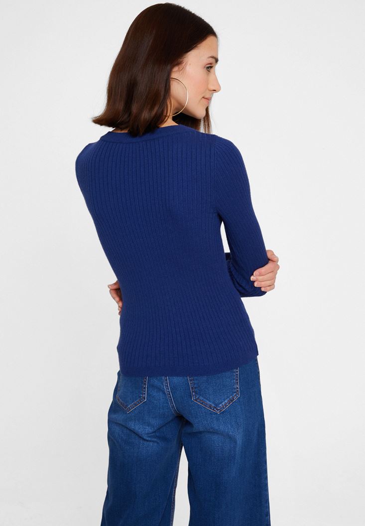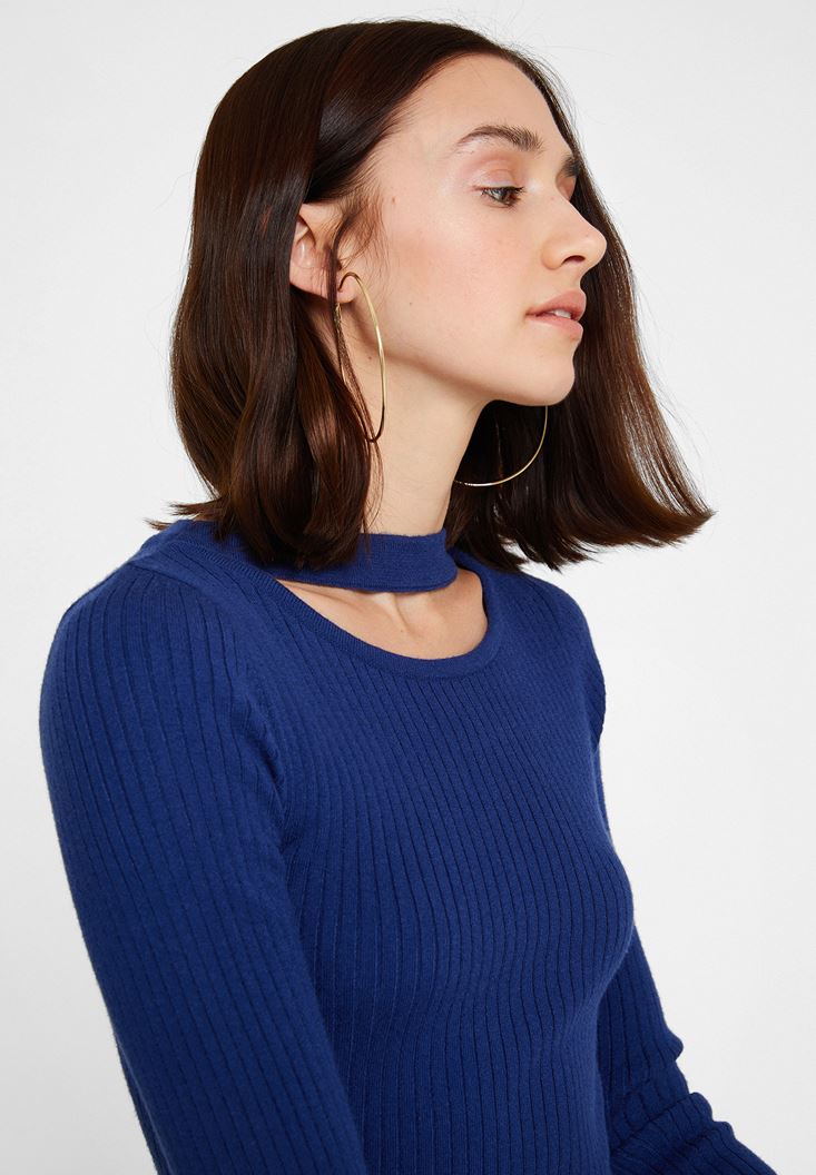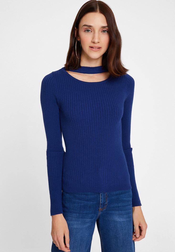 Lacivert Cut-Out Detaylı Uzun Kollu Triko