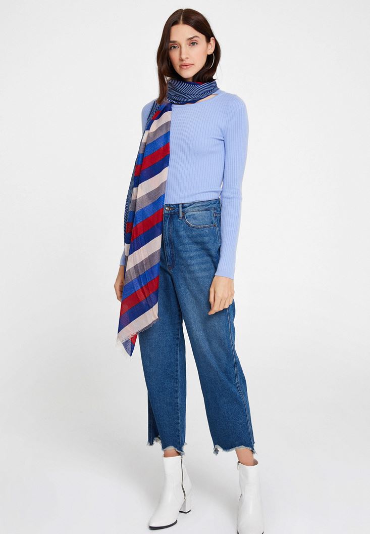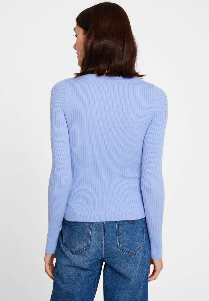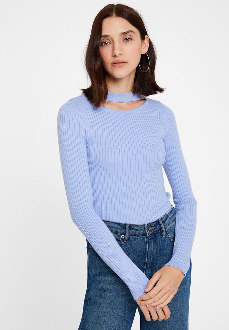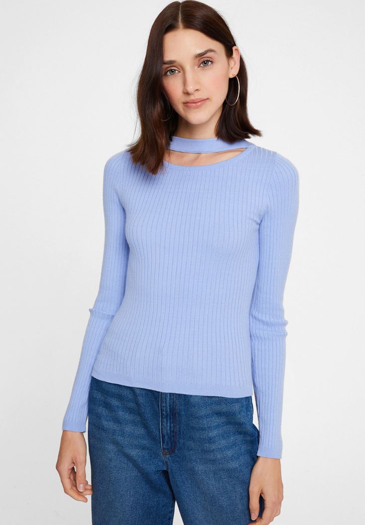 • Bayan Mavi Cut-Out Detaylı Uzun Kollu Triko
