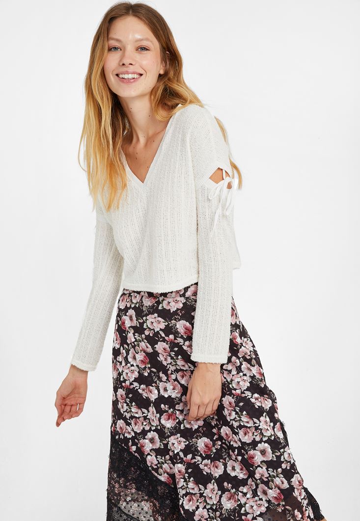 Cut-out Detaylı V Yaka Bluz modeli, yumuşak dokusu ve fark yaratan görünümüyle yeni sezonda sizlerle buluşuyor. kadın bluz modeli, kollarındaki kesik ve ip detayı sayesinde göze çarpan hoş ayrıntılar ile karşınıza çıkıyor. V yaka olan kadın bluz modeli crop kesimiyle günümüz modası içinde yer alan vazgeçilmez parçalardan biri oluyor. Oxxo kadın bluz modeli ile daima genç ve göz alıcı kombinler oluşturarak tarzınıza keyifli dokunuşlar katabilirsiniz. Oxxo yüksek bel pantolon modelleri ile rahatlıkla kullanabileceğiniz kadın bluz modelini dolabınızın favori parçaları arasına hızlıca ekleyebilirsiniz. Kombininizi fular veya kolye ile tamamlayarak , modelin yaka detayını hareketlendiren bir görünüm elde edebilirsiniz. Oxxo’nun heyecan uyandıran ve farklı detayları ile dikkat çeken bluz modellerine siz de bir şans vererek oxxo.com.tr’den hemen sipariş oluşturabilirsiniz.