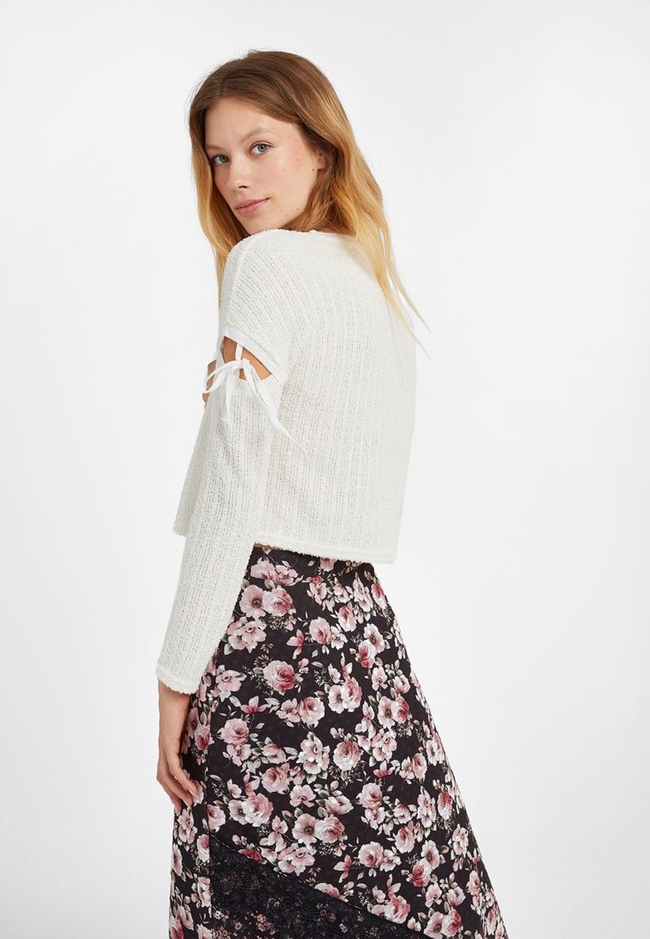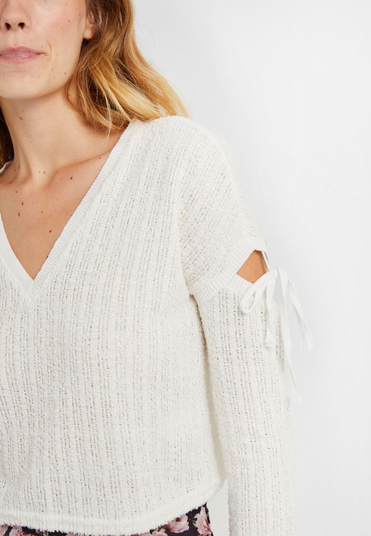 • Bayan Krem Cut-Out Detaylı V Yaka Bluz
