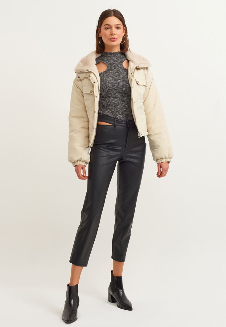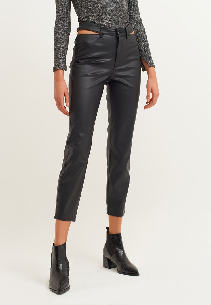 Oxxo Cut-Out Detaylı Vegan Deri Pantolon 213225147