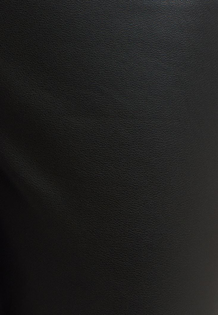Siyah Cut-Out Detaylı Vegan Deri Pantolon