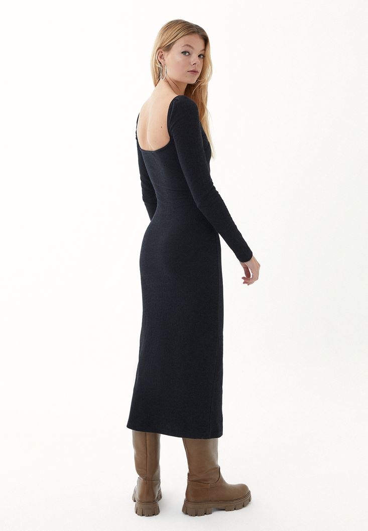 • Bayan Siyah Cut-Out Detaylı Yırtmaçlı Elbise