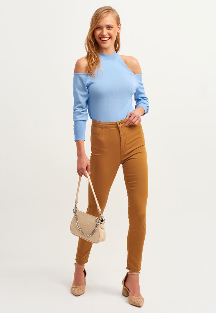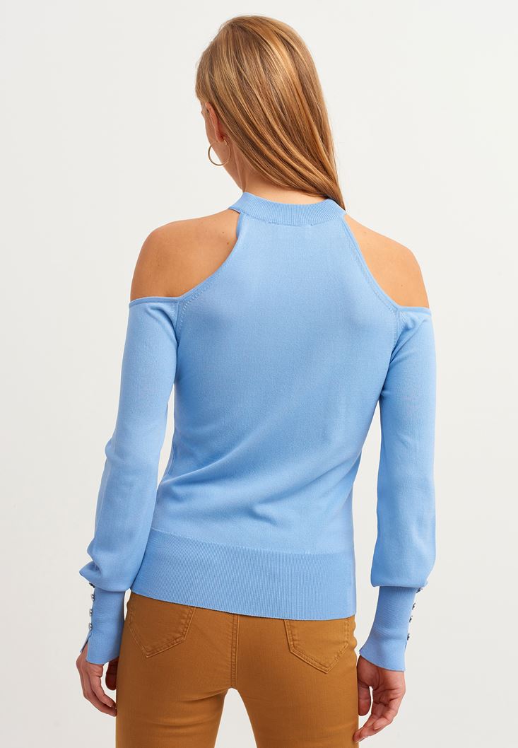 • Bayan Mavi Cut-Out Omuz Detaylı Triko