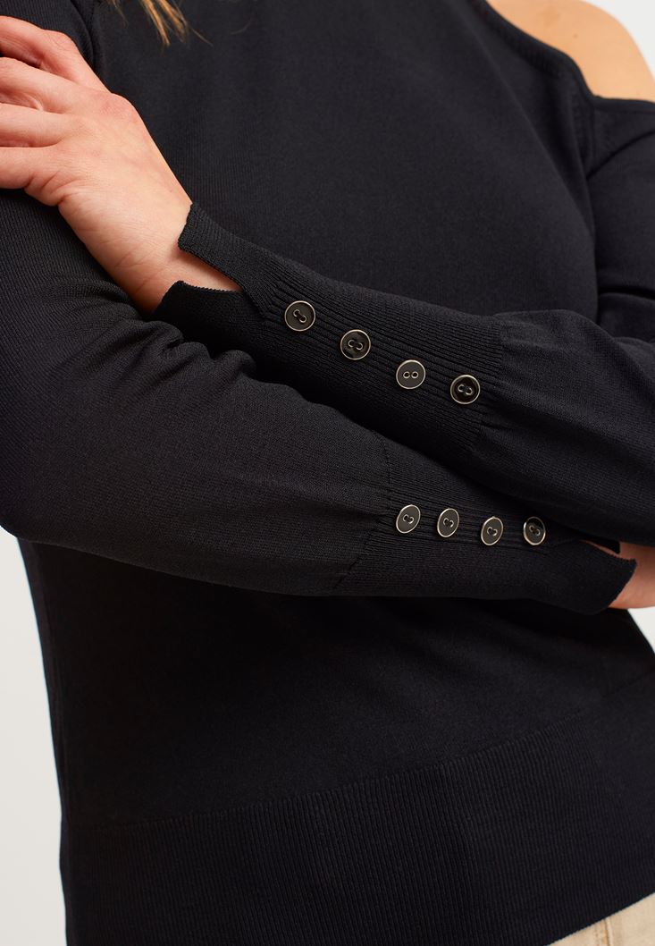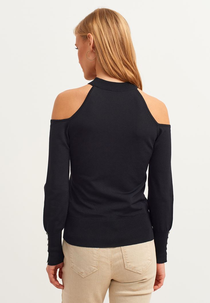 • Bayan Siyah Cut-Out Omuz Detaylı Triko