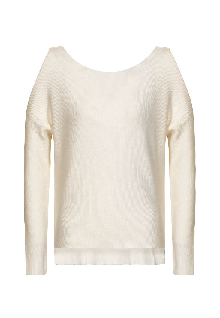 • Bayan Krem Cut-Out Omuz Detaylı Triko