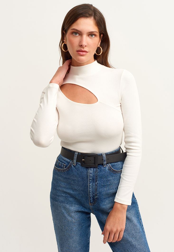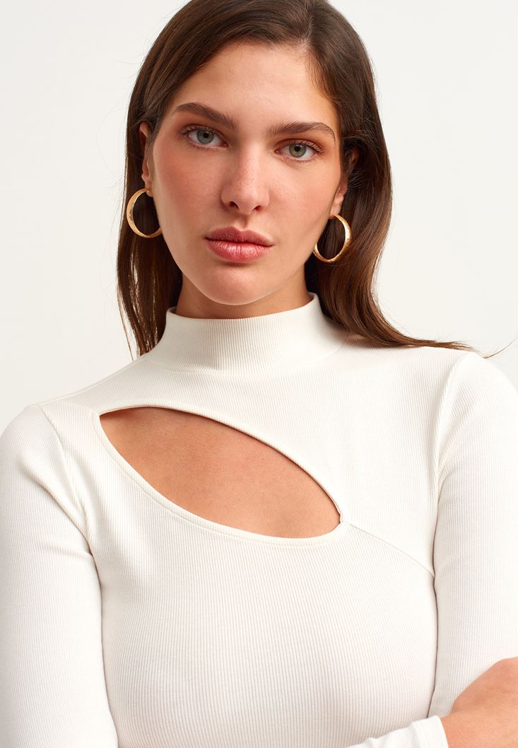 • Bayan Krem Cut-Out Pamuklu Tişört