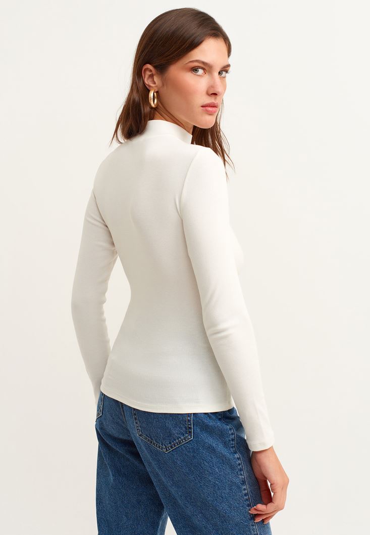 Pamuk içerikli bu tişörtün bedeni saran yumuşacık etkisini yakından görmelisin... Ön kısımdaki kesik detayı ile dikkat çeken uzun kollu tişört her an seni en iyi şekilde sarabilir. Günlük kombinlerinde kullandığın sıcacık dokulu hırkalarla veya blazer ceketlerle onu buluşturarak rahatlığı yakalaman mümkün... Uzun iş günlerinden sonra gelen yemek daveti için bu uzun kollu tişört seni kurtarabilir. :)