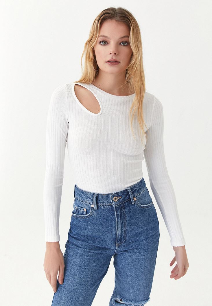 Cut-Out Triko Kazak ve Mom Jean Pantolon Kombini