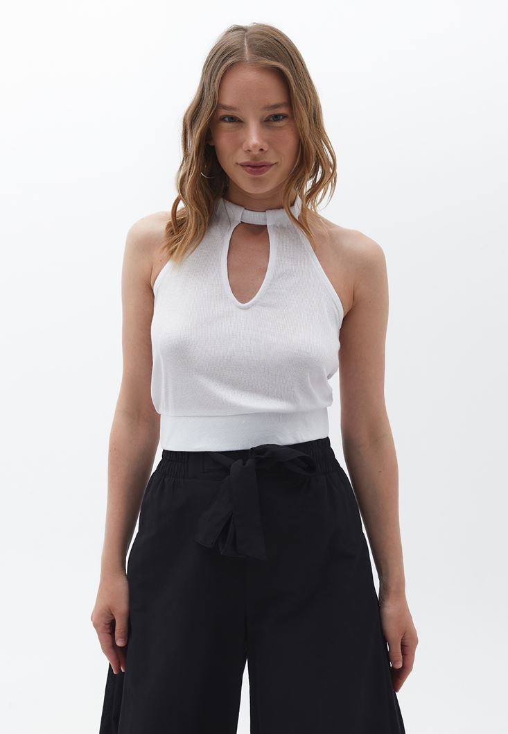 Beyaz Cut-Out Yaka Detaylı Bluz