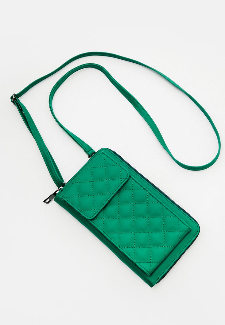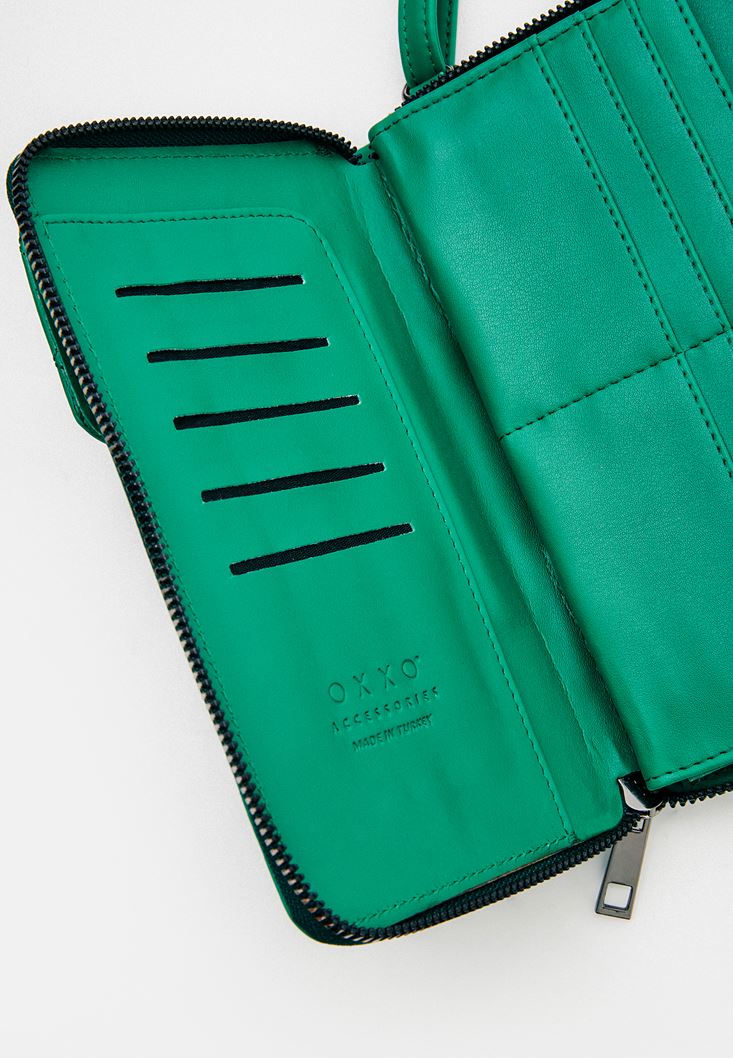 Yeşil Cüzdan Detaylı Telefon Çantası