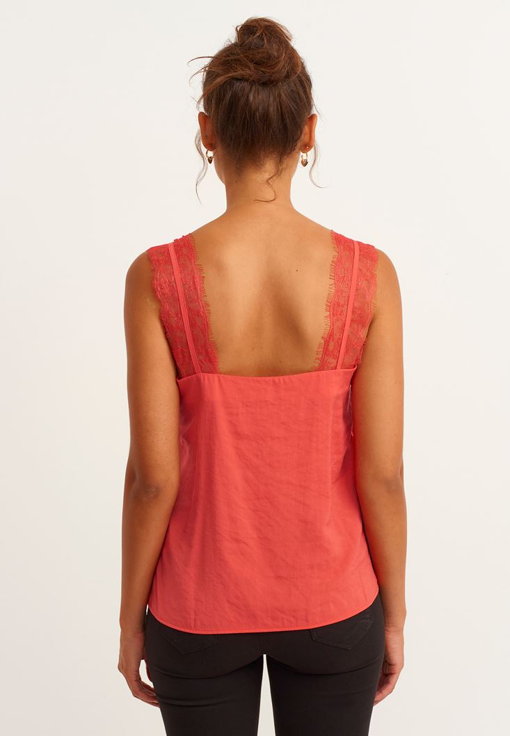 Kırmızı Dantel Askılı V-Neck Atlet (MODAL)
