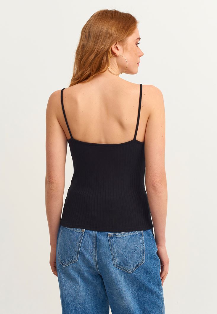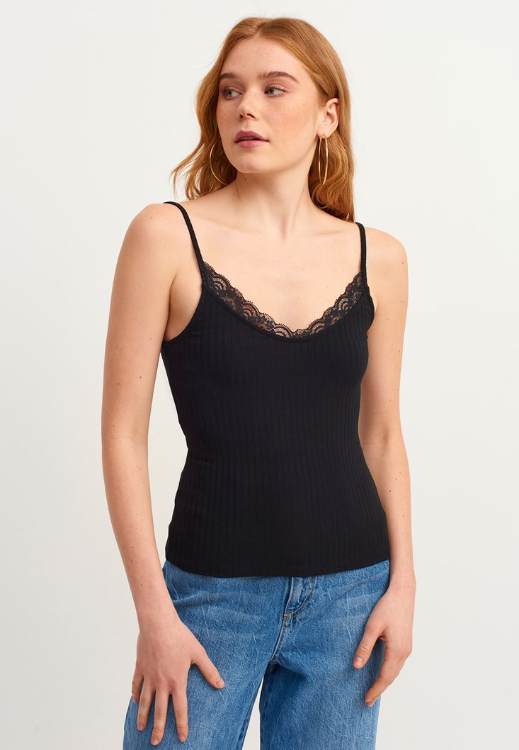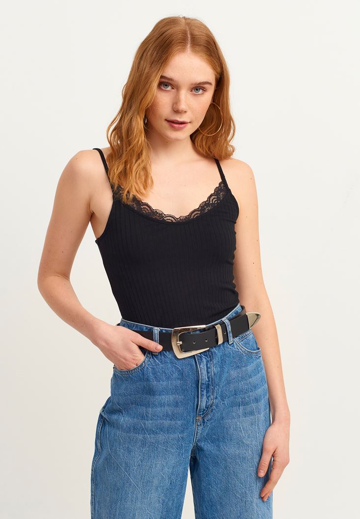 • Bayan Siyah Dantel Detaylı Askılı Atlet