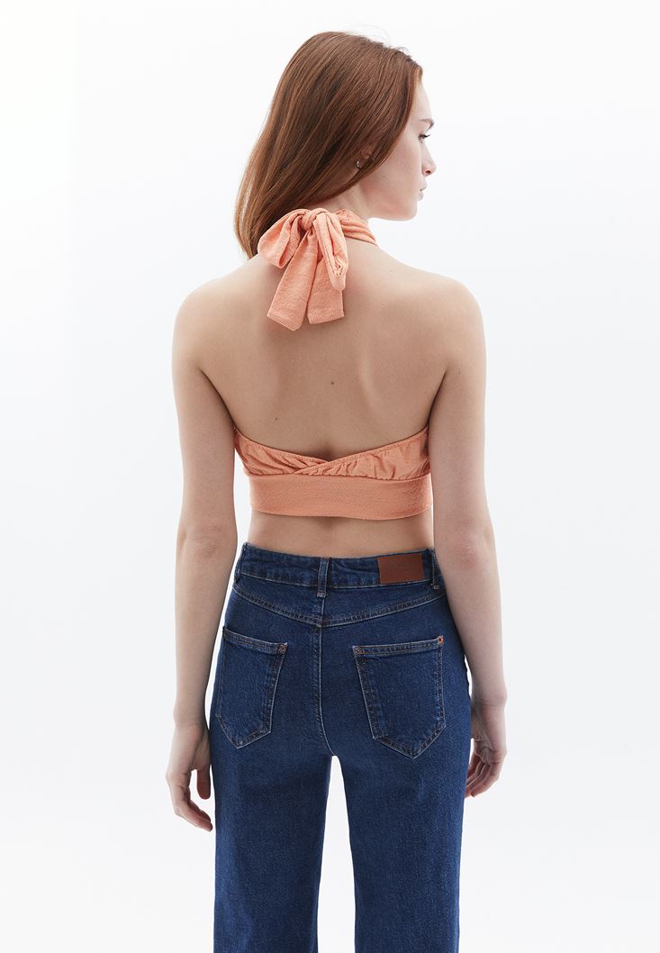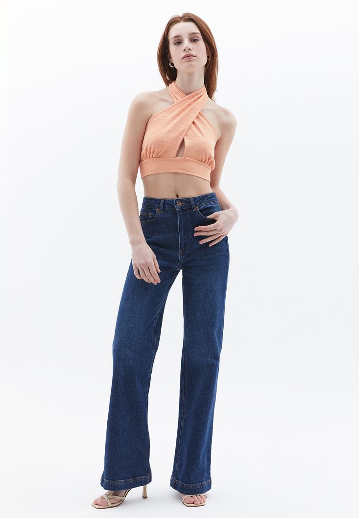 Halter Yaka Crop Top ve Çizgili Pantolon Kombini