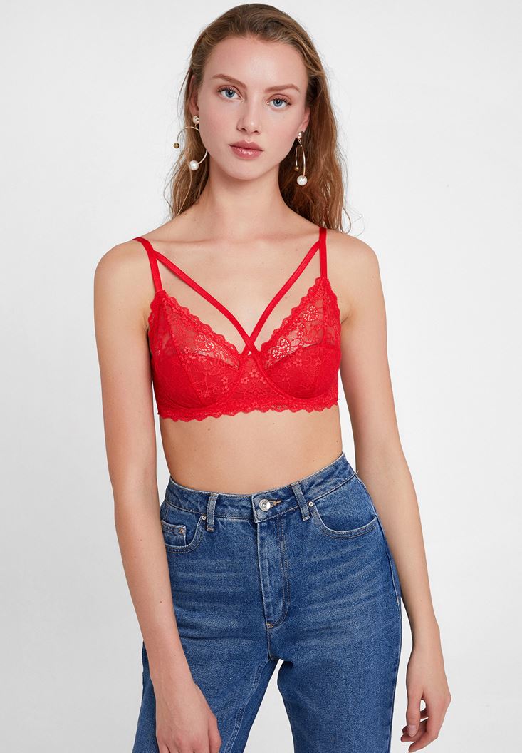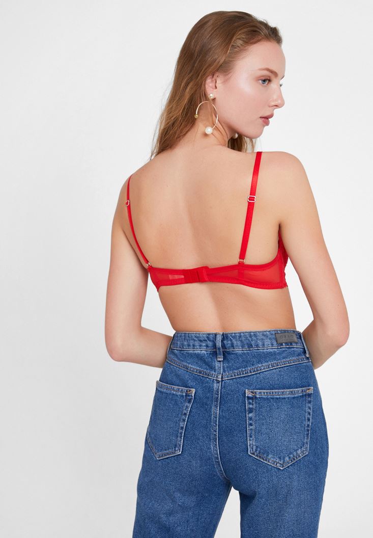Kırmızı Dantel Detaylı Biyeli Büstiyer