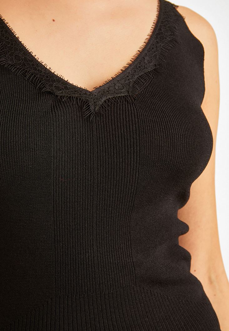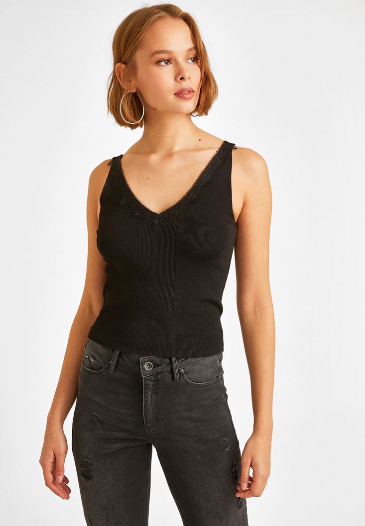 Dantel Detaylı Bluz modeli, viskon içerikli yapısını ve örme dokunun yumuşaklığını yeni sezonda sizlere sunuyor. Kadın bluz modeli, V yaka ayrıntısının çekici duruşuna ek olarak dantelli görünümüyle de dikkat çekiyor. Dantel detaylı bluz modeli ile günlük hayatınızda veya özel gecelerde kullanacağınız şık kombinlere ulaşabilirsiniz. Kadın bluz modeliyle yüksek belli pantolonlar veya etekler tercih ederek dikkat çeken stiller elde edebilirsiniz. Dantelli bluz modeliyle oluşturacağınız kombinleri deri botlar veya topuklu ayakkabılarla kolaylıkla tamamlayabilirsiniz. Oxxo'nun mükemmel ayrıntılar ve feminen detaylarla sizlere sunduğu kadın bluz modelleri ile moda dünyasının hızlı değişimine ayak uydurabilirsiniz.
