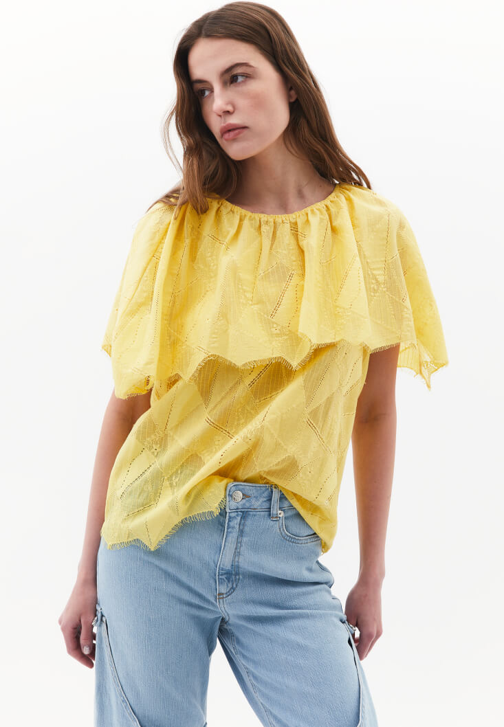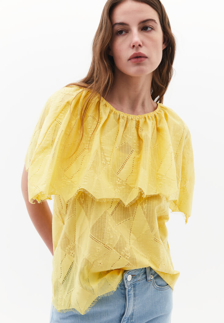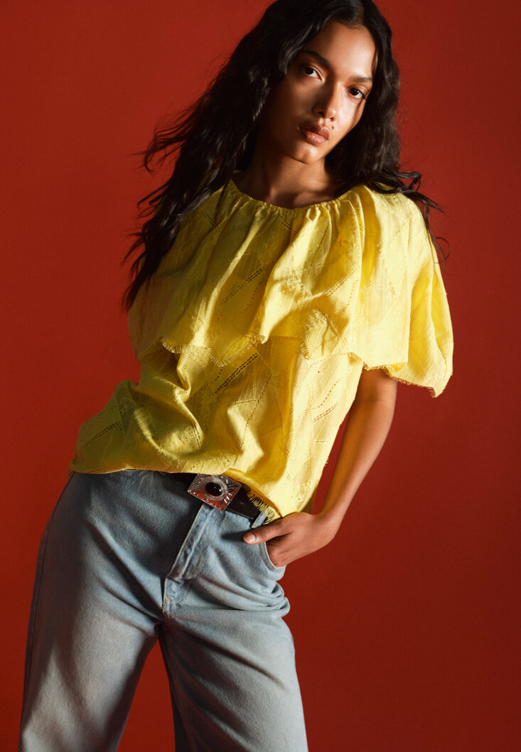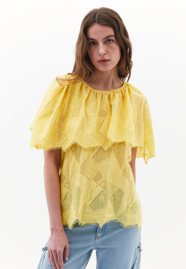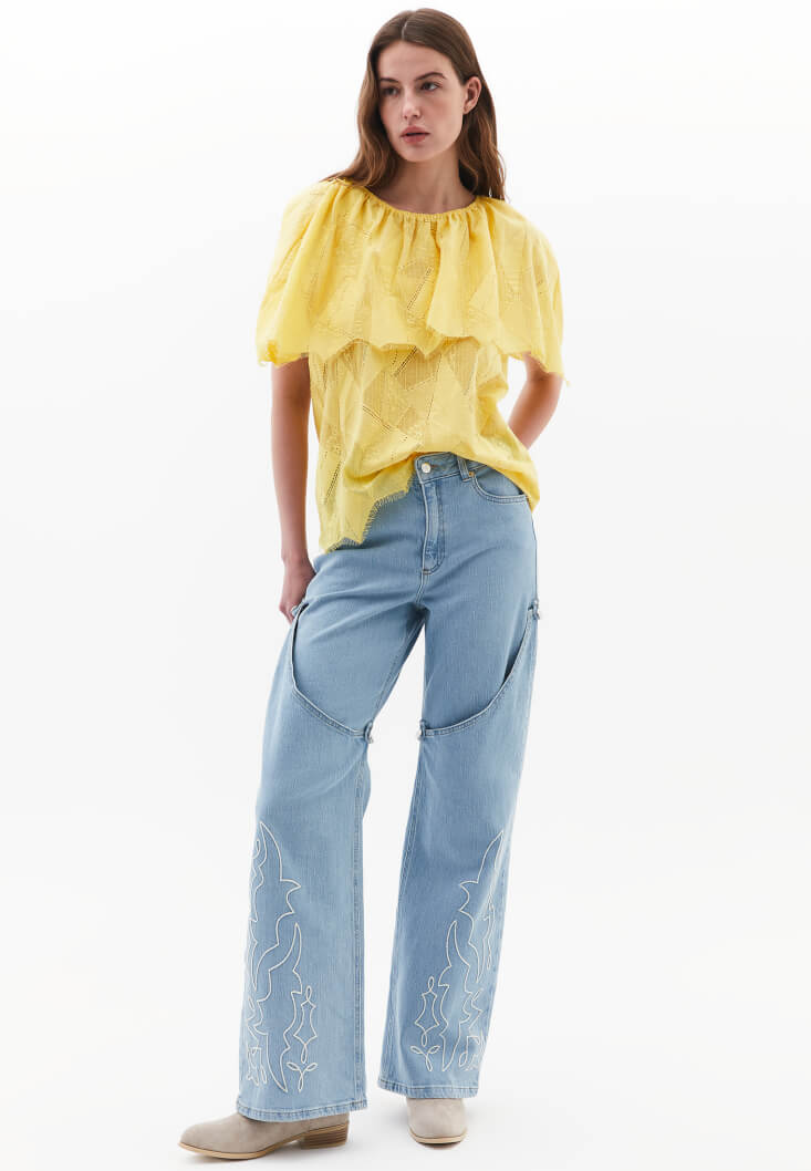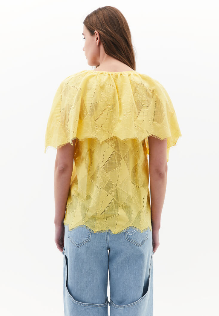 Omuz ve yaka kısmındaki ince detaylarla zenginleşen bu parça; jean, etek ya da şortlarla kombinlenerek ister romantik ister modern bir görünüm elde etmenizi sağlar.