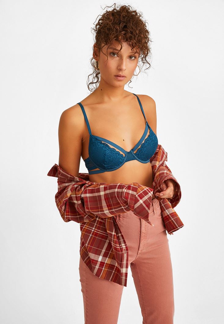 • Bayan Mavi Dantel Detaylı Büstiyer