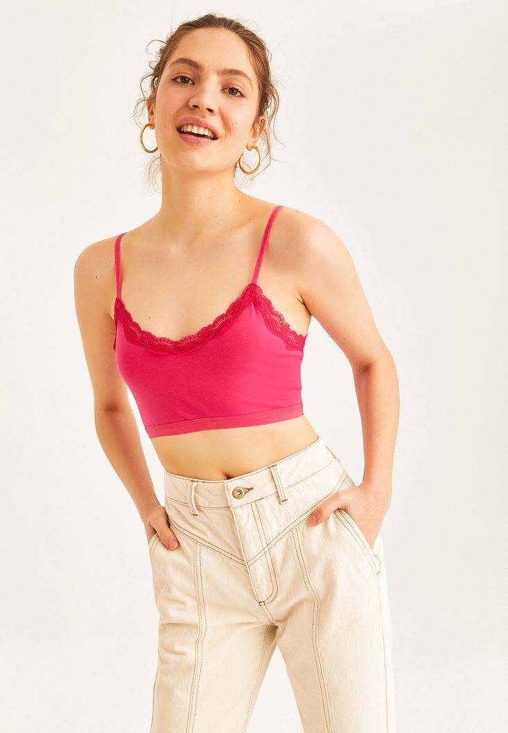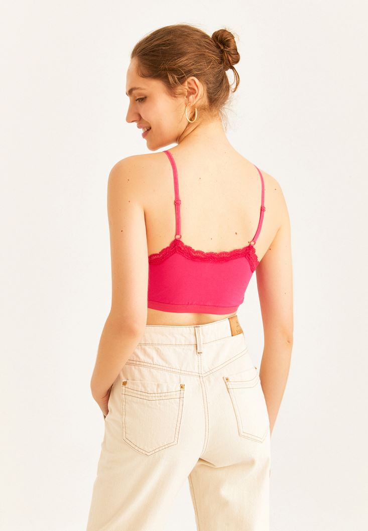 • Bayan Pembe Dantel Detaylı Büstiyer