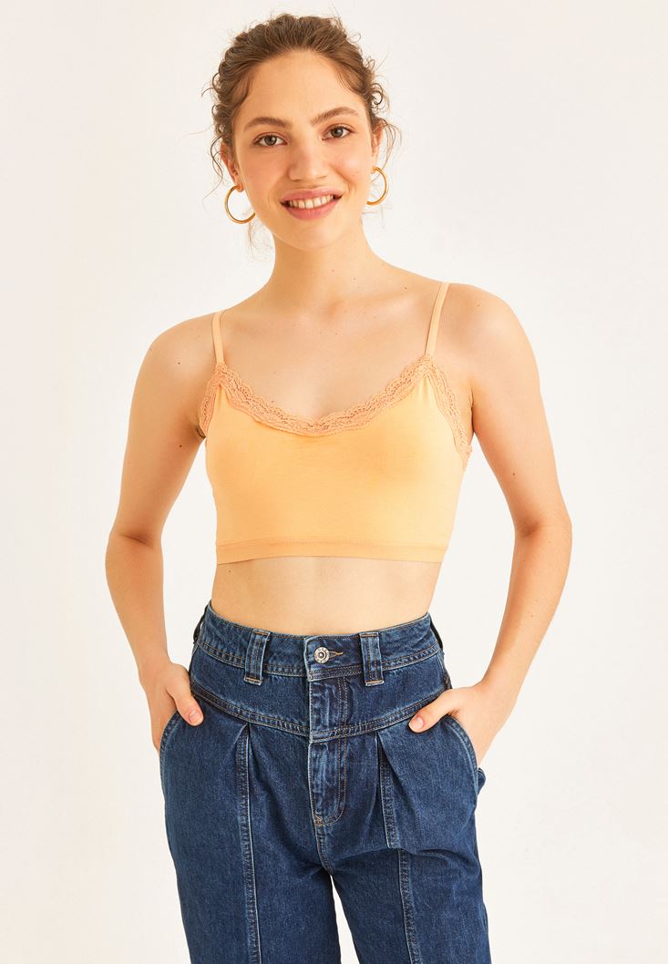 • Bayan Turuncu Dantel Detaylı Büstiyer