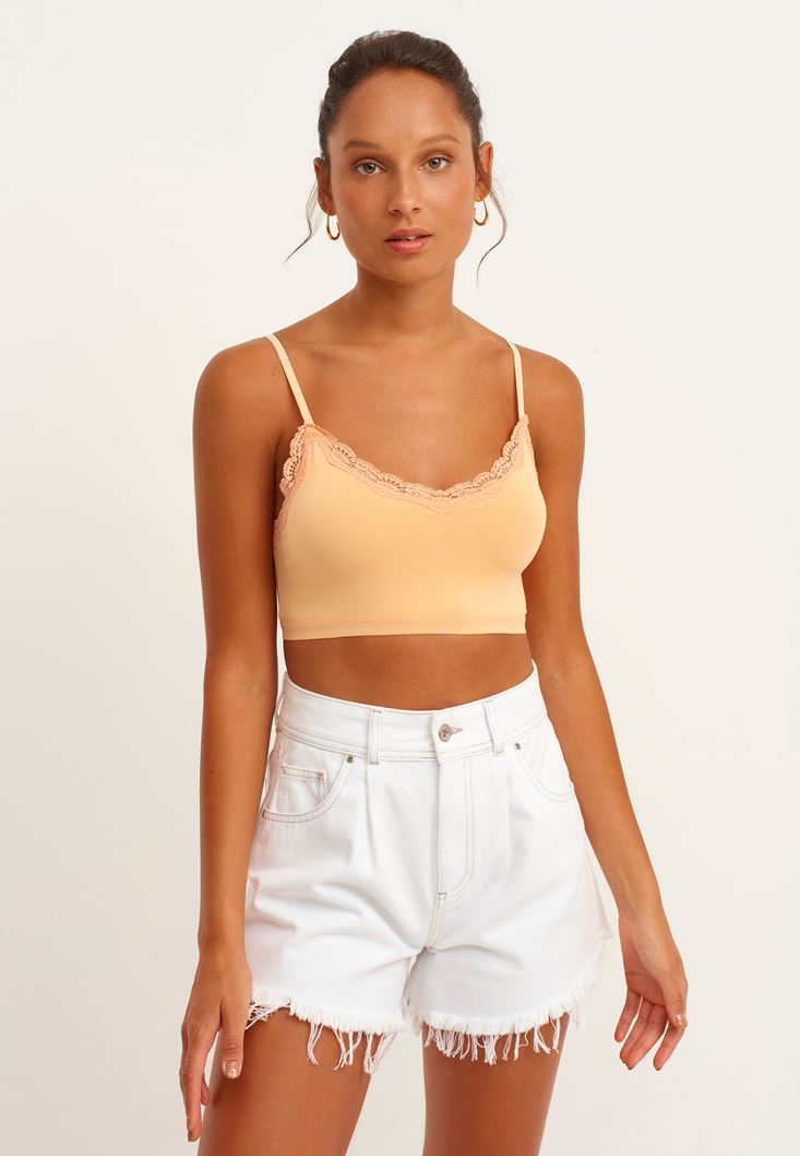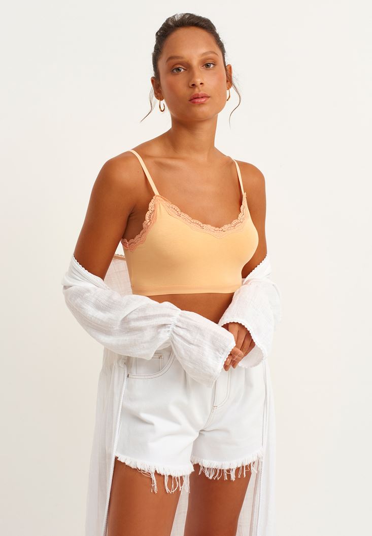 • Bayan Turuncu Dantel Detaylı Büstiyer
