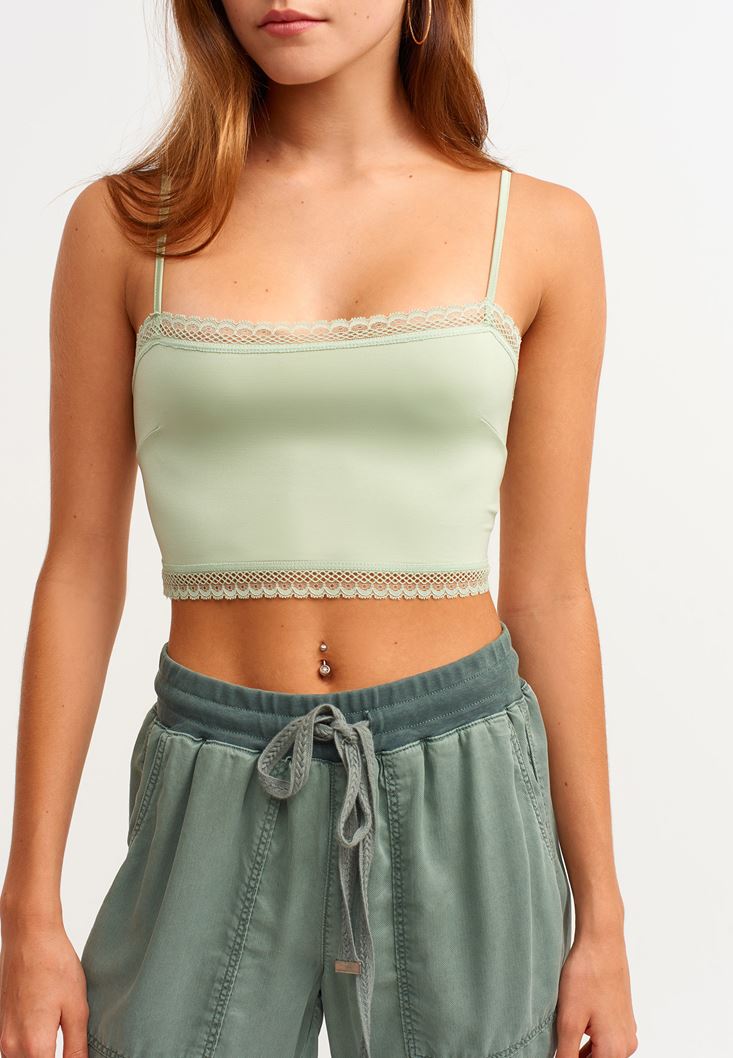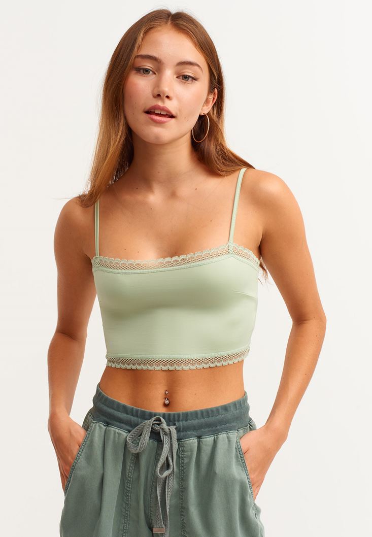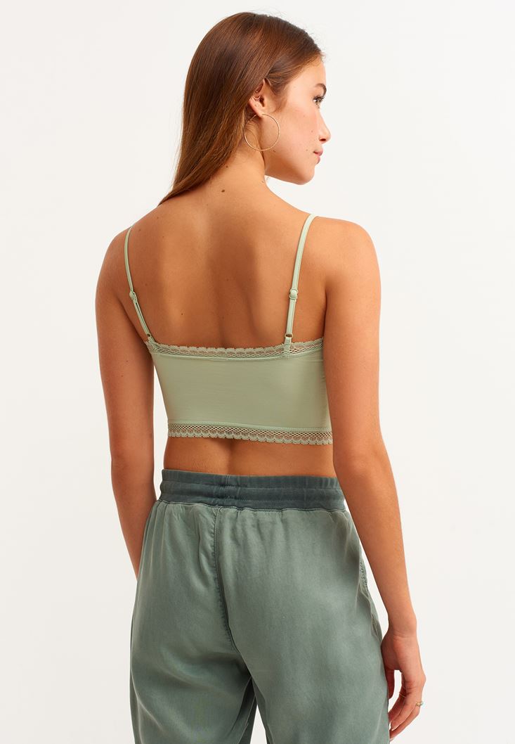 Yeşil Dantel Detaylı İnce Askılı Büstiyer