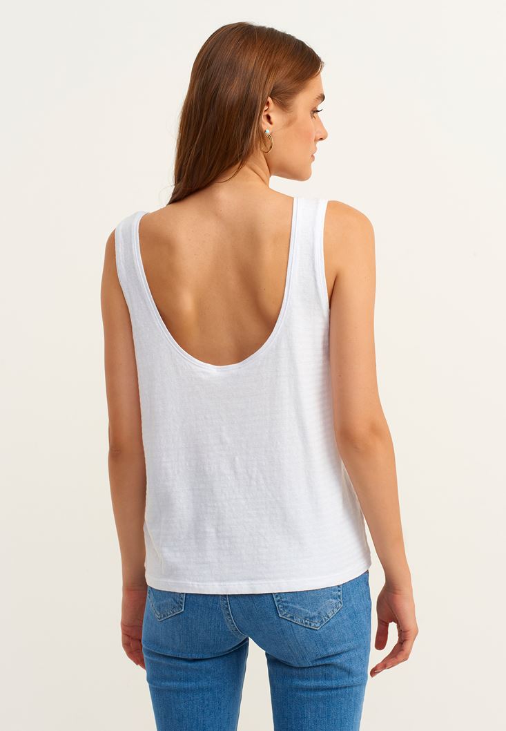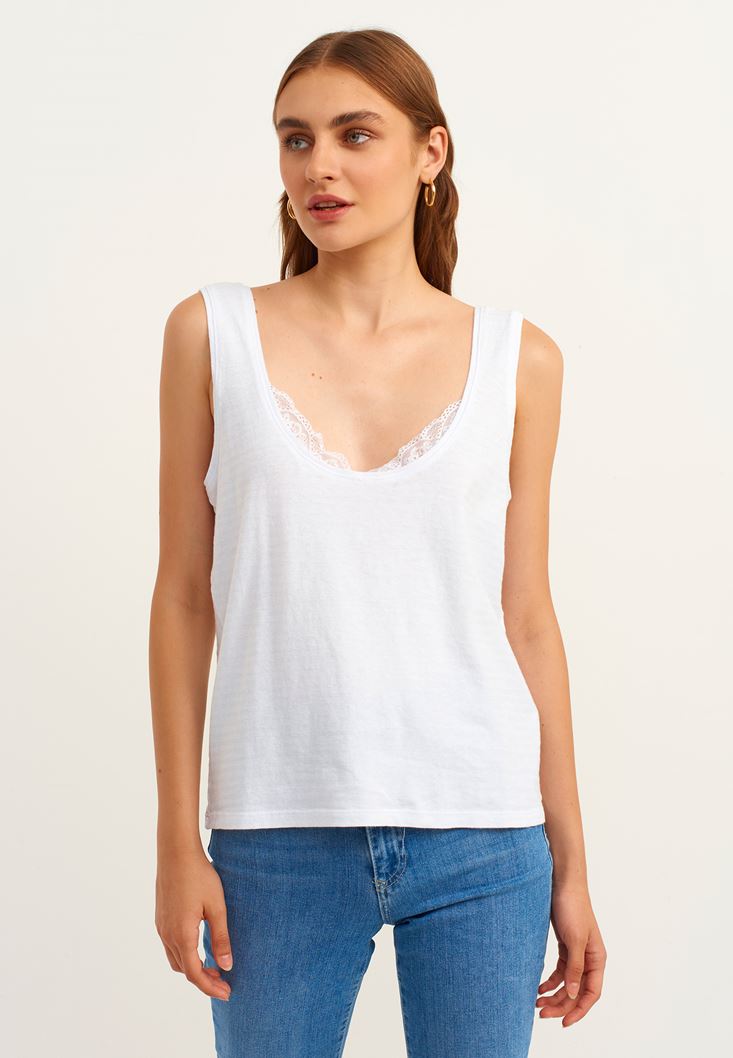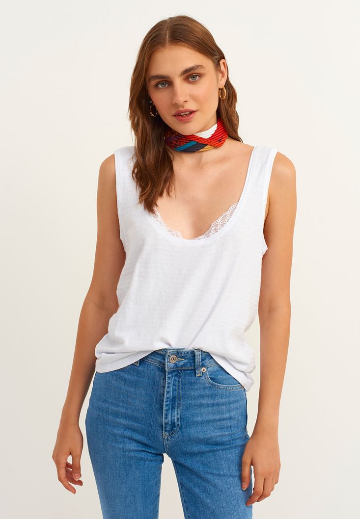 • Bayan Beyaz Dantel Detaylı Keten Atlet